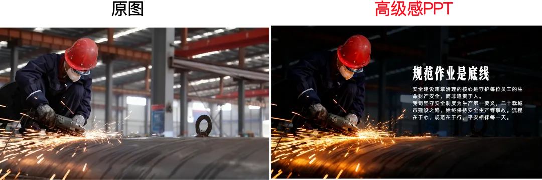 去除干扰、扩图留白、突出主体这三个步骤,不用严格按顺序,针对不同的图片你可以随机应变。在上图的基础上,在PPT里添加文字,得到如下图: