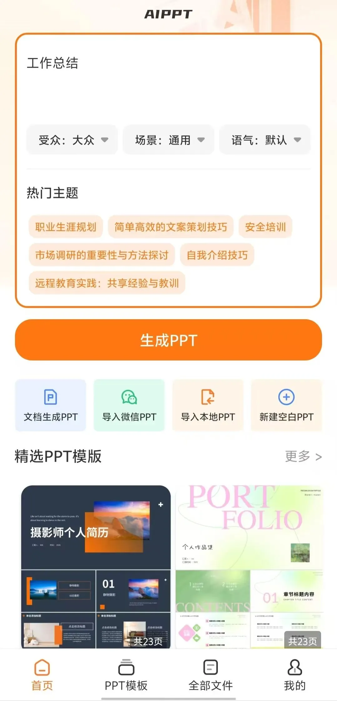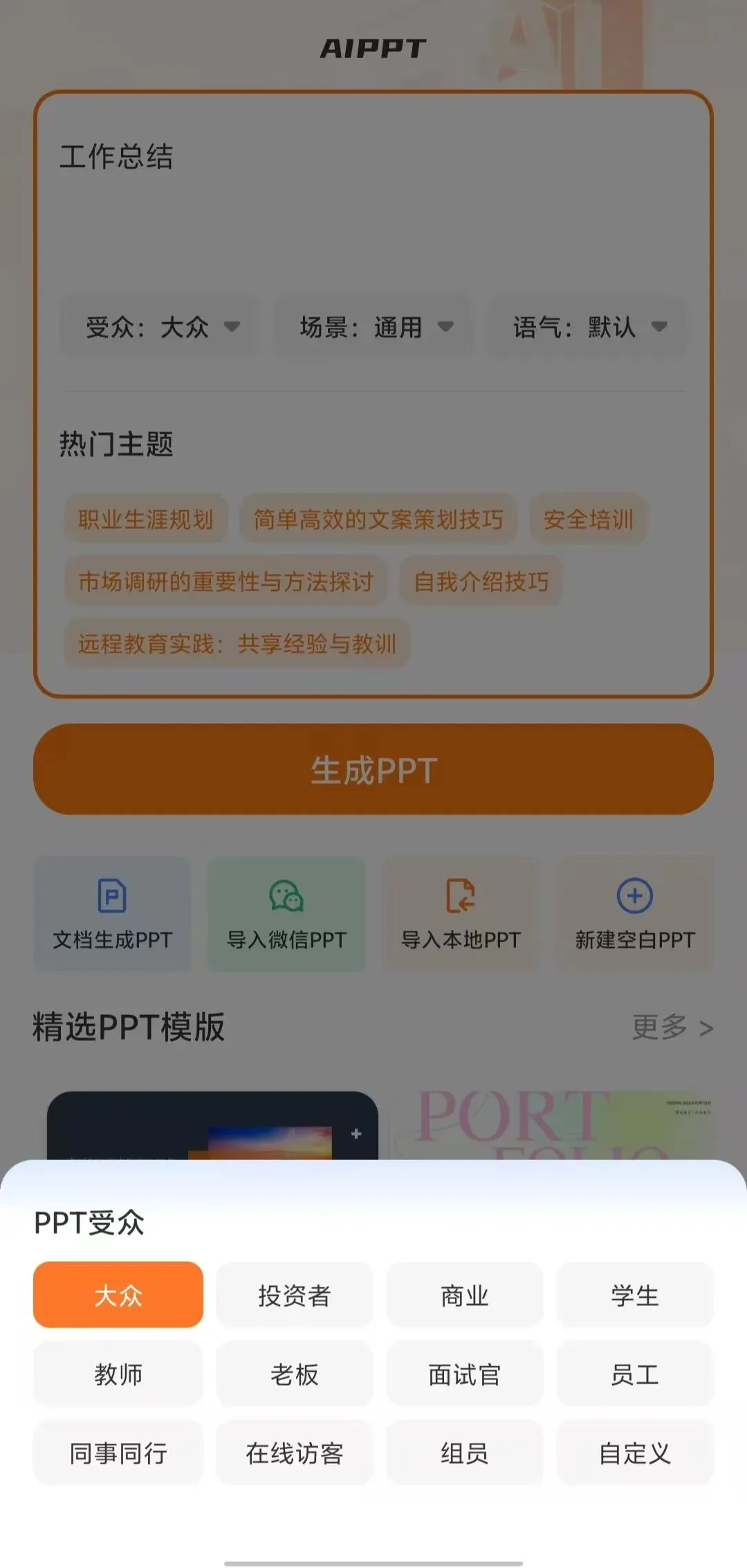 PPT模版生成器,解锁特权到2099|AI一键生成,海量主题自选,辅助提升你的PPT编写效率,轻松应对!