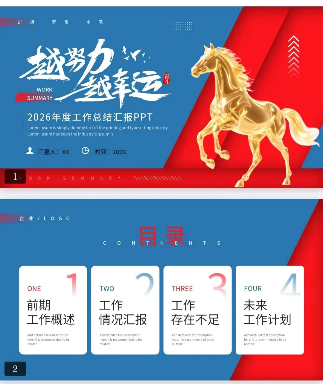 2026越努力越幸运年终总结PPT模板(可免费转存下载编辑)