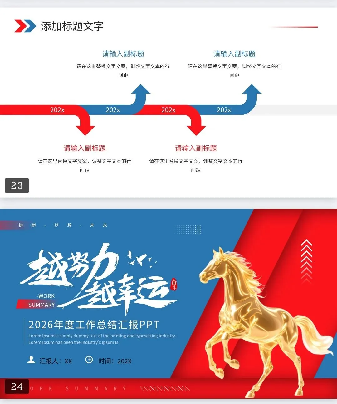 >2026越努力越幸运年终总结PPT模板(可免费转存下载编辑)