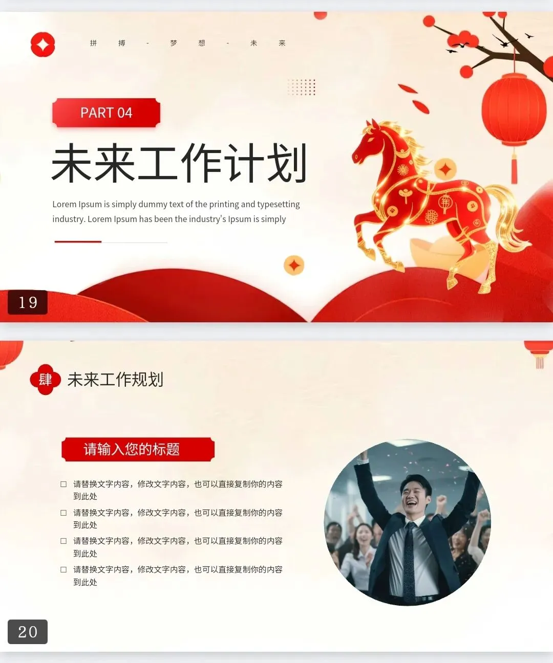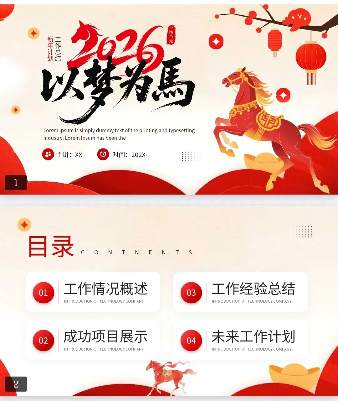 【2026以梦为马工作总结PPT模板】