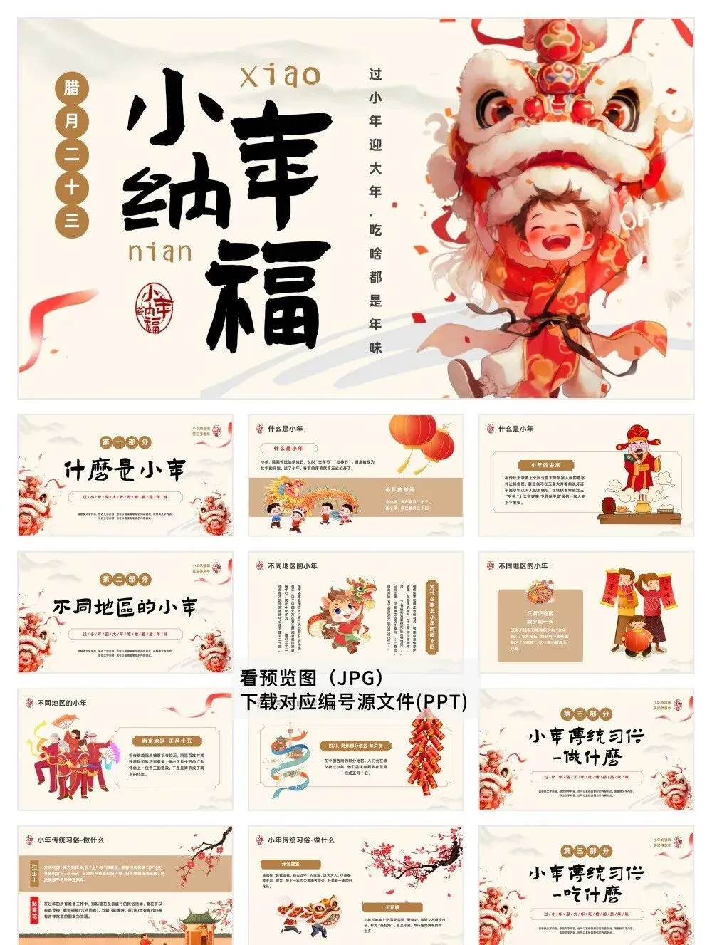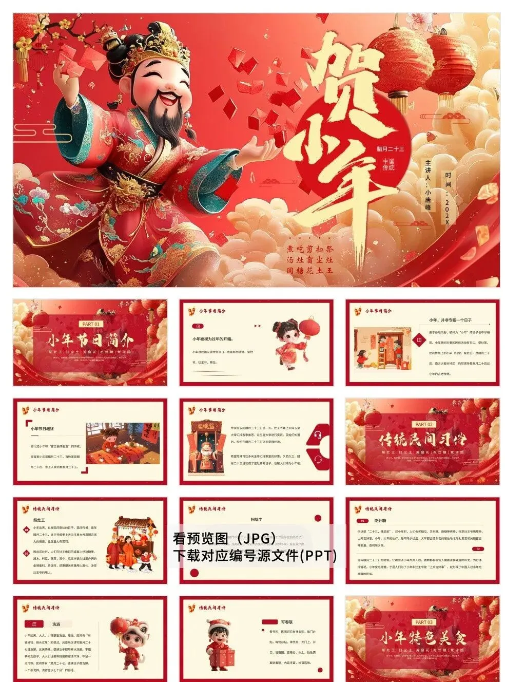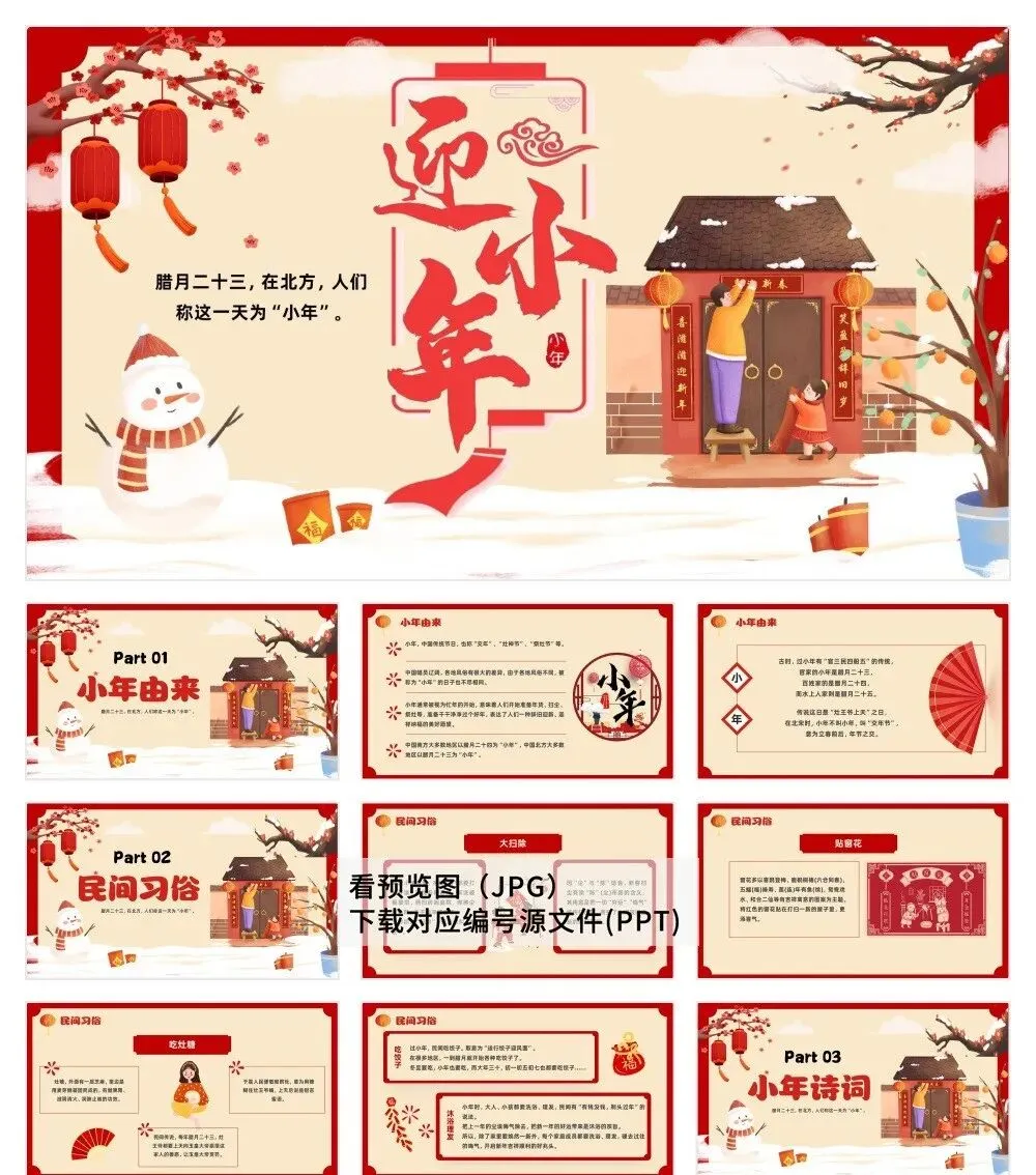喜迎小年,30套精美习俗PPT模板免费分享!涵盖传统讲解、节日活动等主题,助您轻松分享年俗文化。
