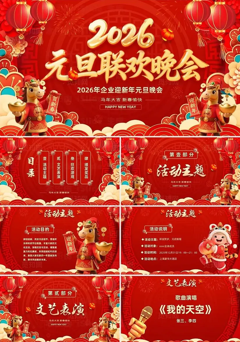 本文主要分享欢度元旦主题PPT模板(包含年会+班级联欢晚会)领取方式一、