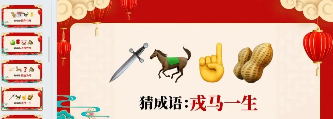 马年成语猜码版:精选“马到成功”“一马当先”等20个含马成语,搭配趣味图片线索,猜中就能当酒桌助兴码,氛围直接拉满;
