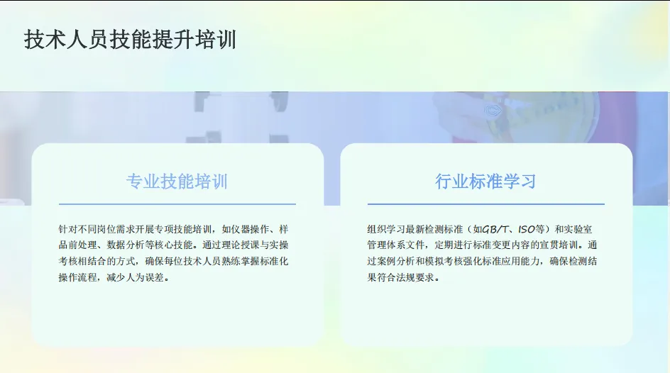 为更好的为大家提供服务,现开展食品安全管理员、食品安全总监、粮油质量检验员、食品检验员、化学检验员、微生物检验员、无菌检验员、无损检验员、物理性能检验员、环境监测员、质检员、试验员、计量员(包括长度计量员 、热工计量员、电学计量员、化学计量员、声学计量员、光学计量员、电离辐射计量员、力学计量员、无线电计量员、时间频率计量员)、CNAS/CMA内审员、计量校准员。可为企业定制内部培训业务,欢迎咨询合作。