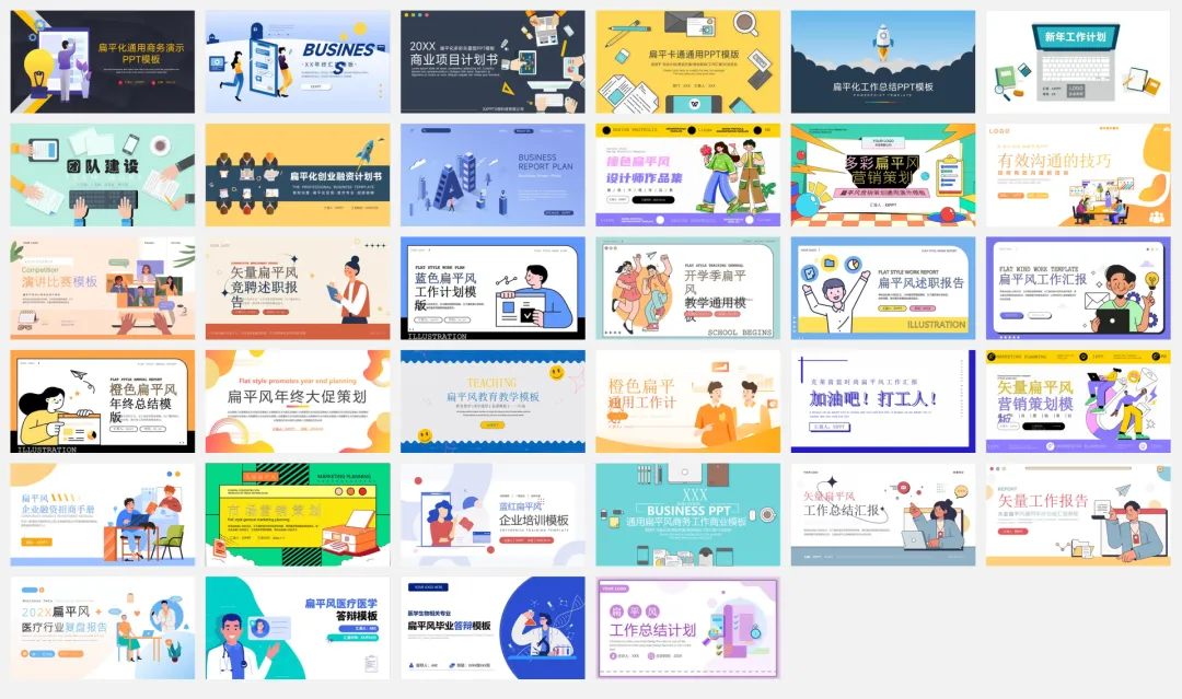 亲爱的读者们,你是否在为制作PPT而烦恼?是否在寻找一种既时尚又具有专业感的风格来为你的演示增添一抹亮色?现在,好消息来啦!为了满足你对于优质、免费且多样化的PPT模板的需求,我们特地为你带来了34套精心设计的扁平风PPT模板,让你在众多演示中脱颖而出,轻松抓住听众的眼球!下面就让我们一起走进这多彩的模板世界,探索它们为你带来的无限可能吧!