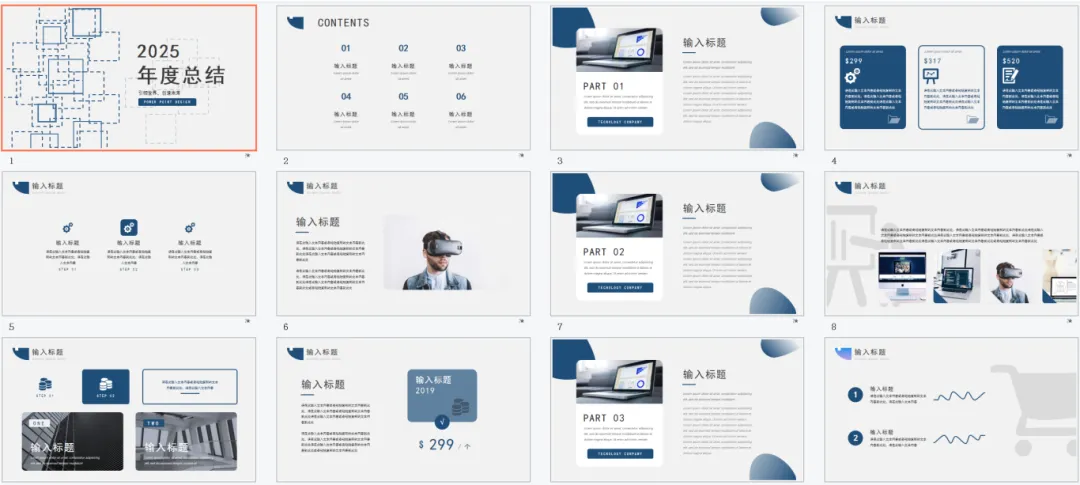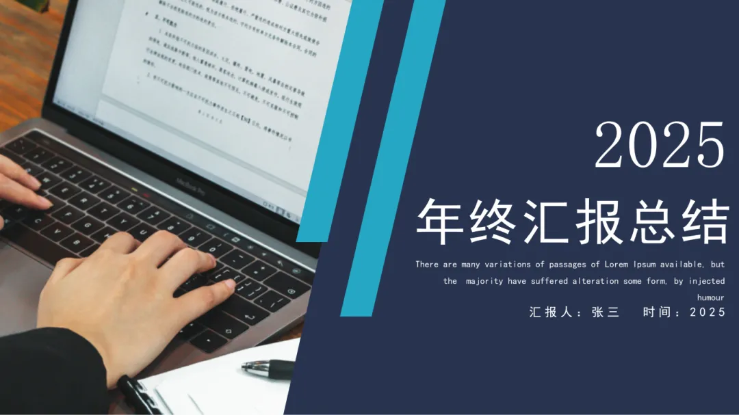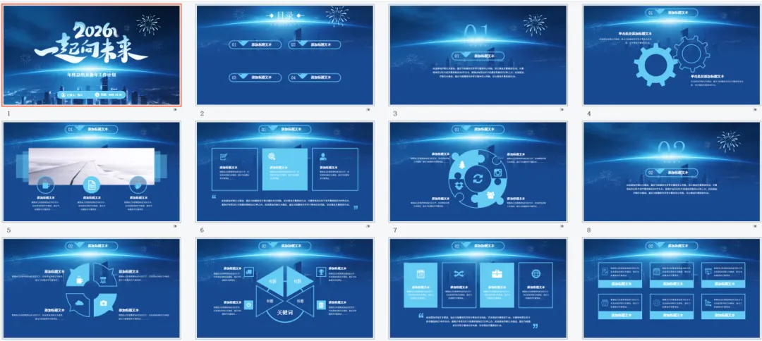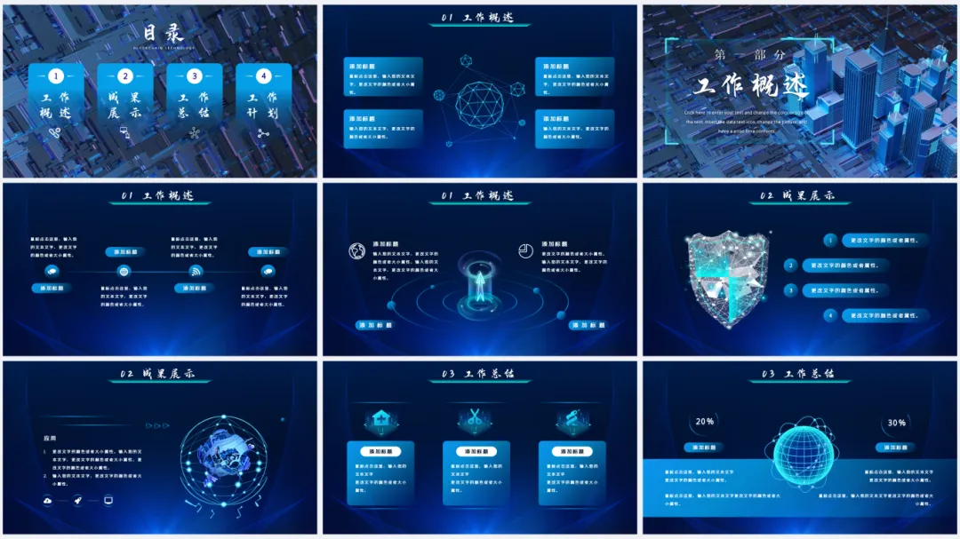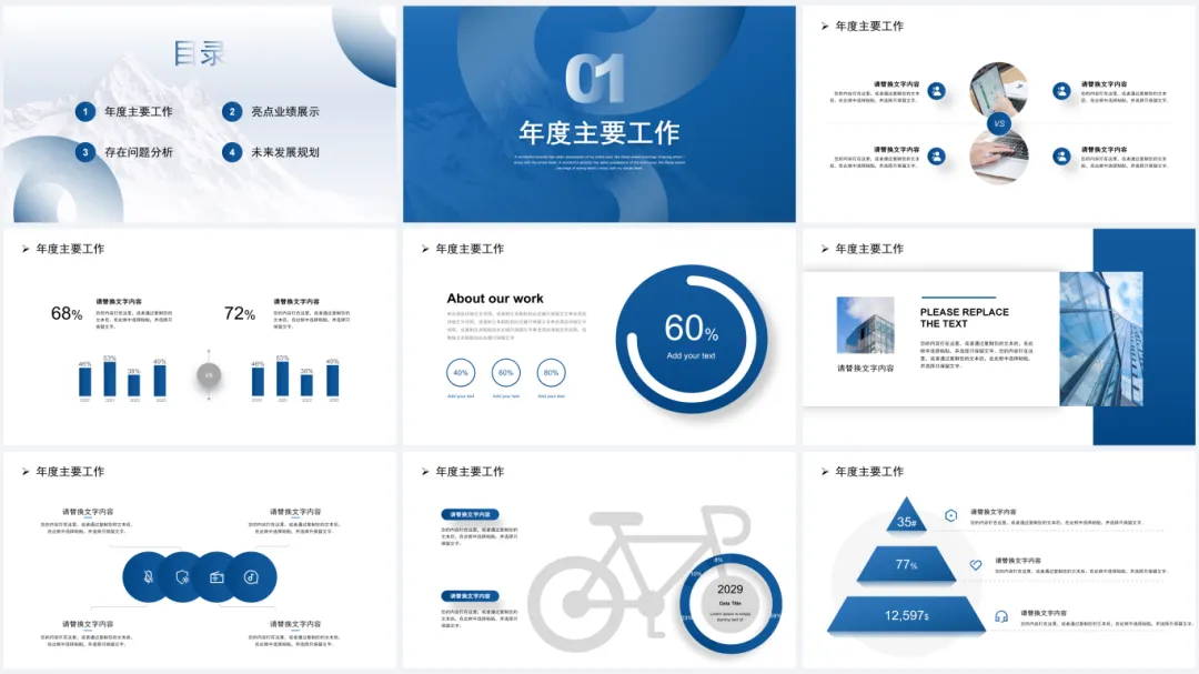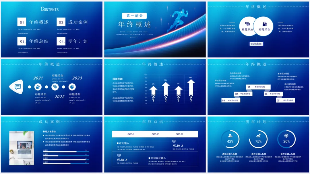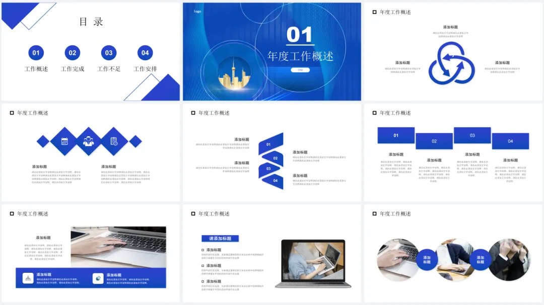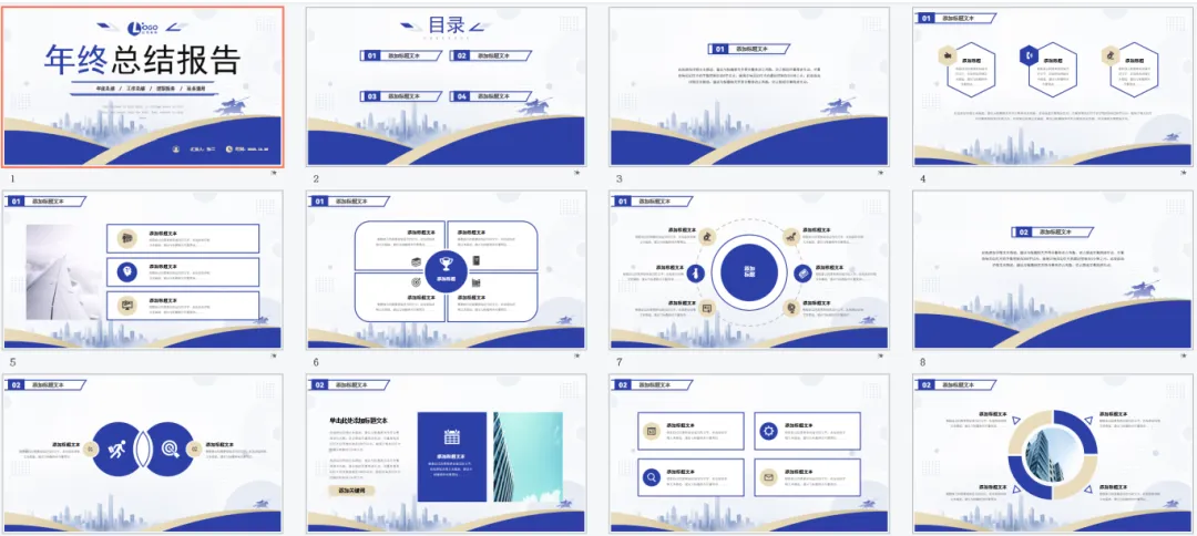 深蓝渐变商务风年终总结PPT模板