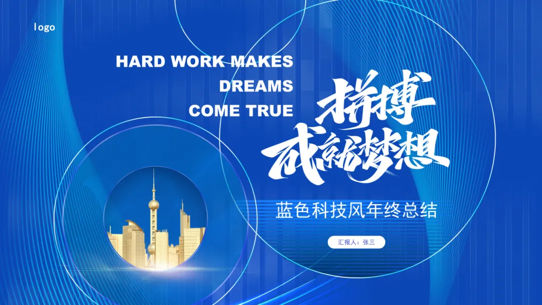 蓝色科技风年终总结PPT模板