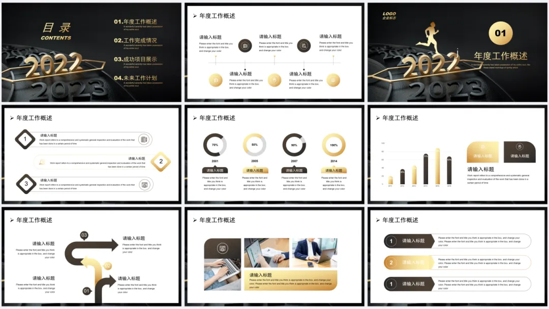 黑金质感年终总结PPT模板