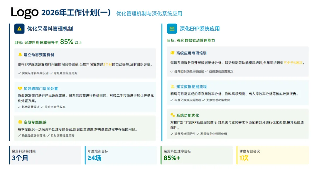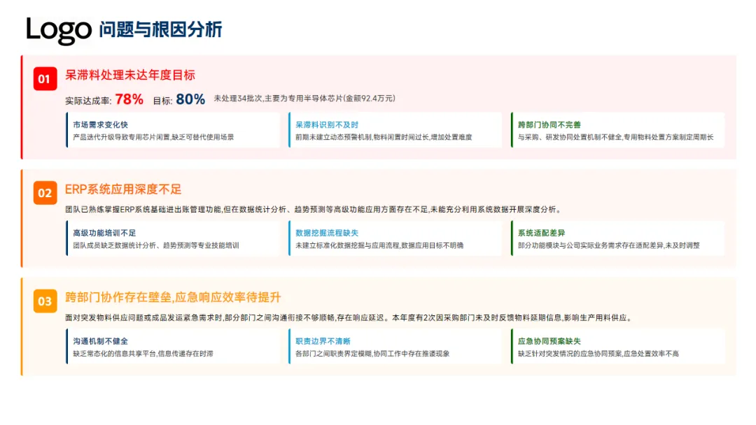 二是通过修订管理制度、建立三级盘点机制、推行了6S管理及强化跨部门间的共同协作,大幅提升了运营效率,但是仍然存在呆滞料处理不彻底、员工对ERP系统操作熟练程度不足等问题。