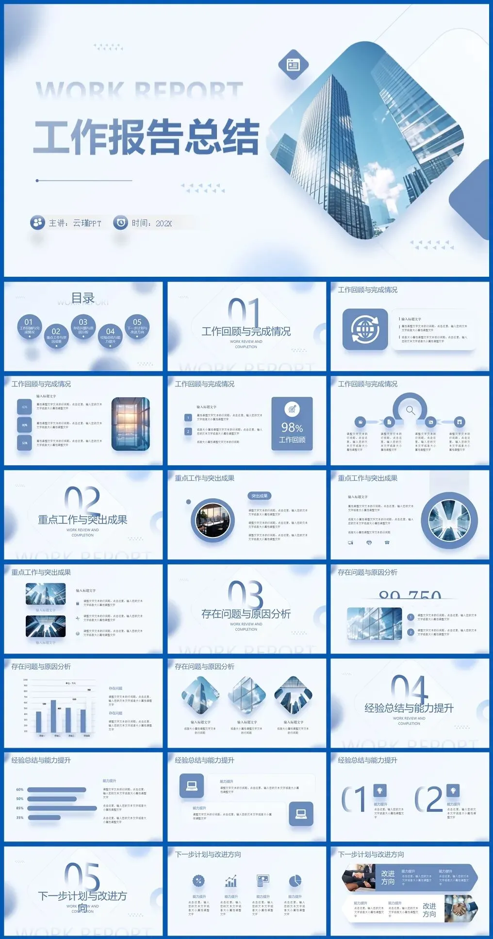 【PPT模板】蓝灰色简约风工作报告总结PPT通用模板 | 0109