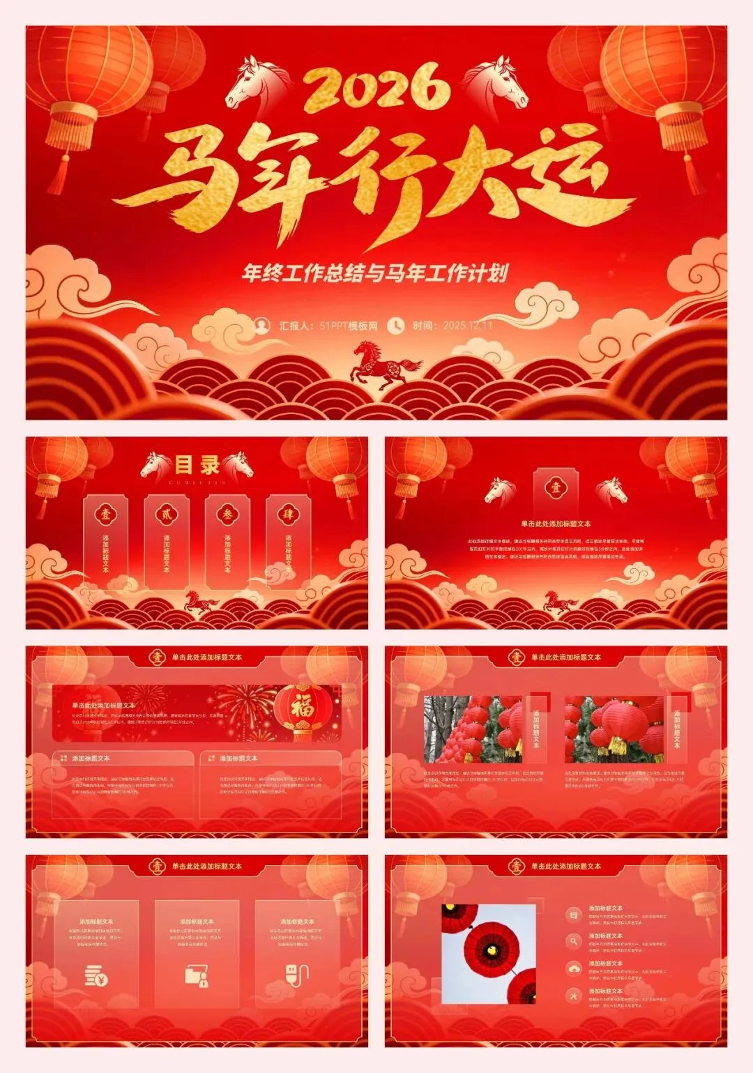 岁末将至,马年行大运,正是总结耕耘、擘画新篇之时。愿你以笃定之心复盘过往,以昂扬之志共筑梦想,在奔跑中收获成长,于奋进里迎接更闪耀的明天!用行动兑现目标,以实干赢得未来。本周为大家推荐喜庆新年风、中国风、商务风共6套年终总结、工作汇报、工作计划PPT模板,文末有无套路免费下载方法。