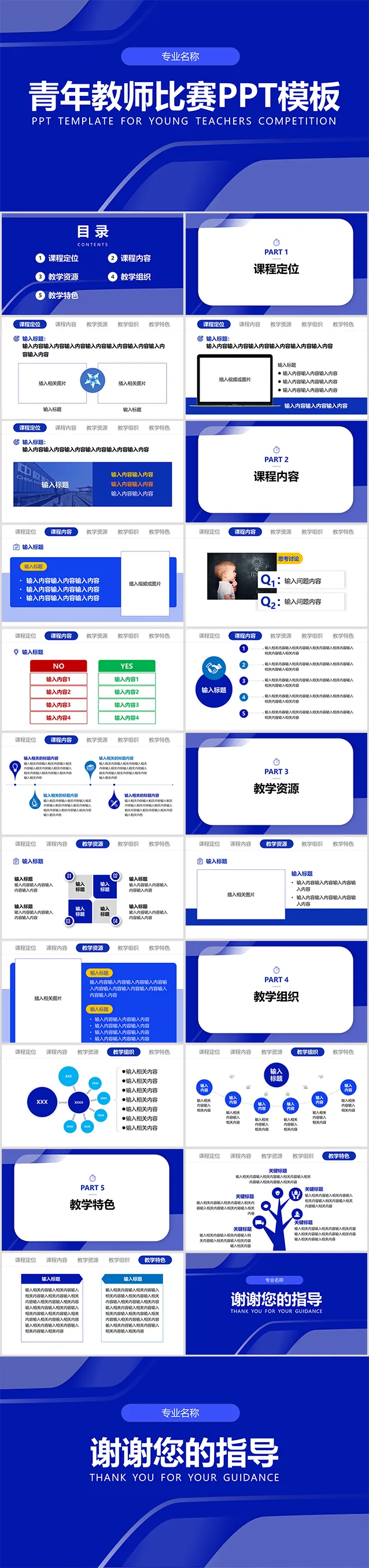 >【PPT模板】青年教师教学竞赛PPT模板(蓝色简约)