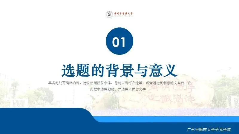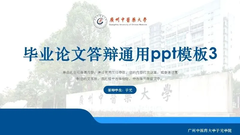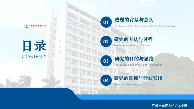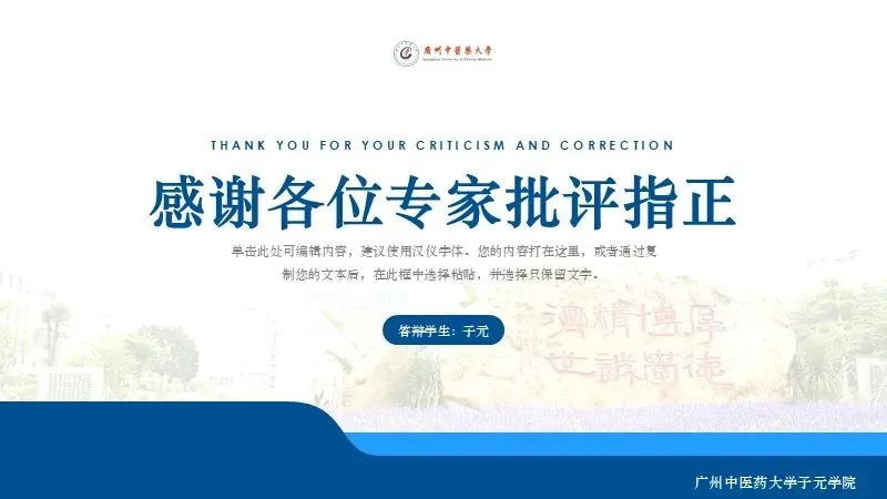当前位置:首页>PPT模板>广州中医药大学学术答辩通用PPT模板3