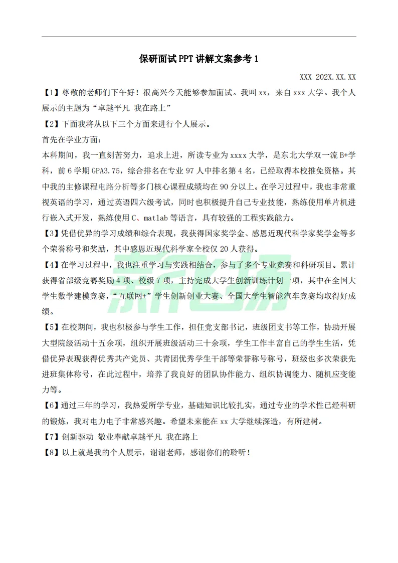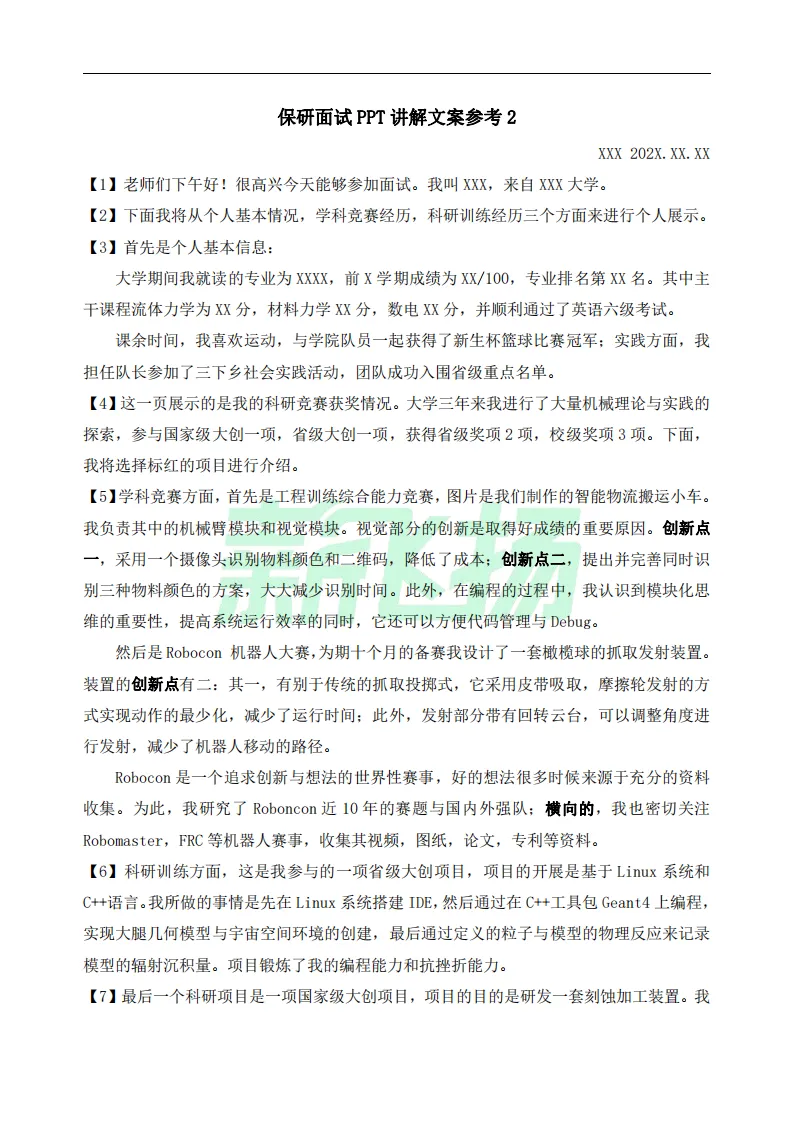 保研PPT讲解文案