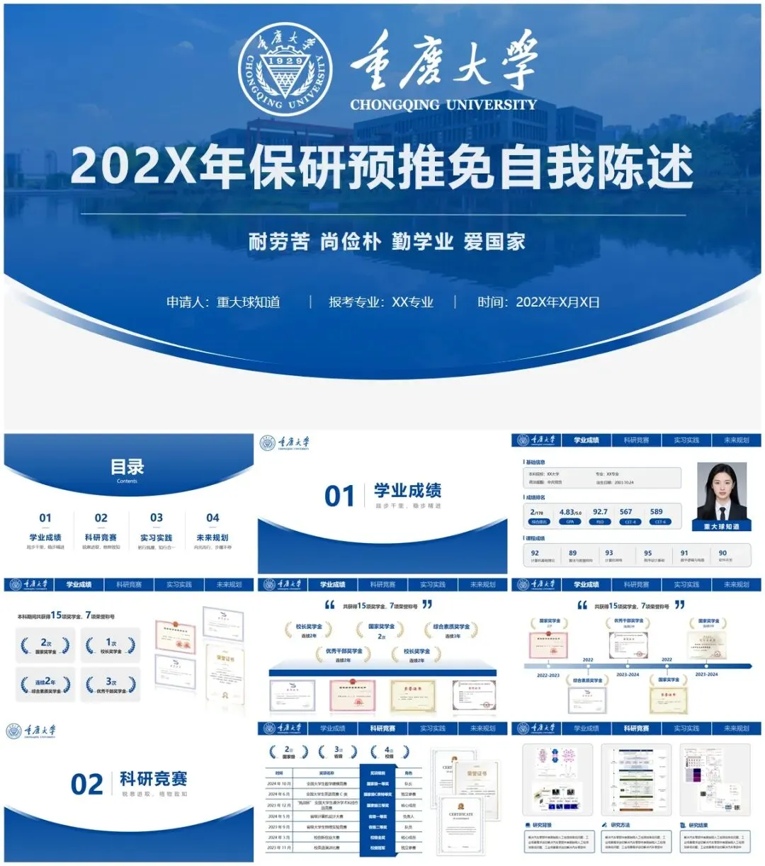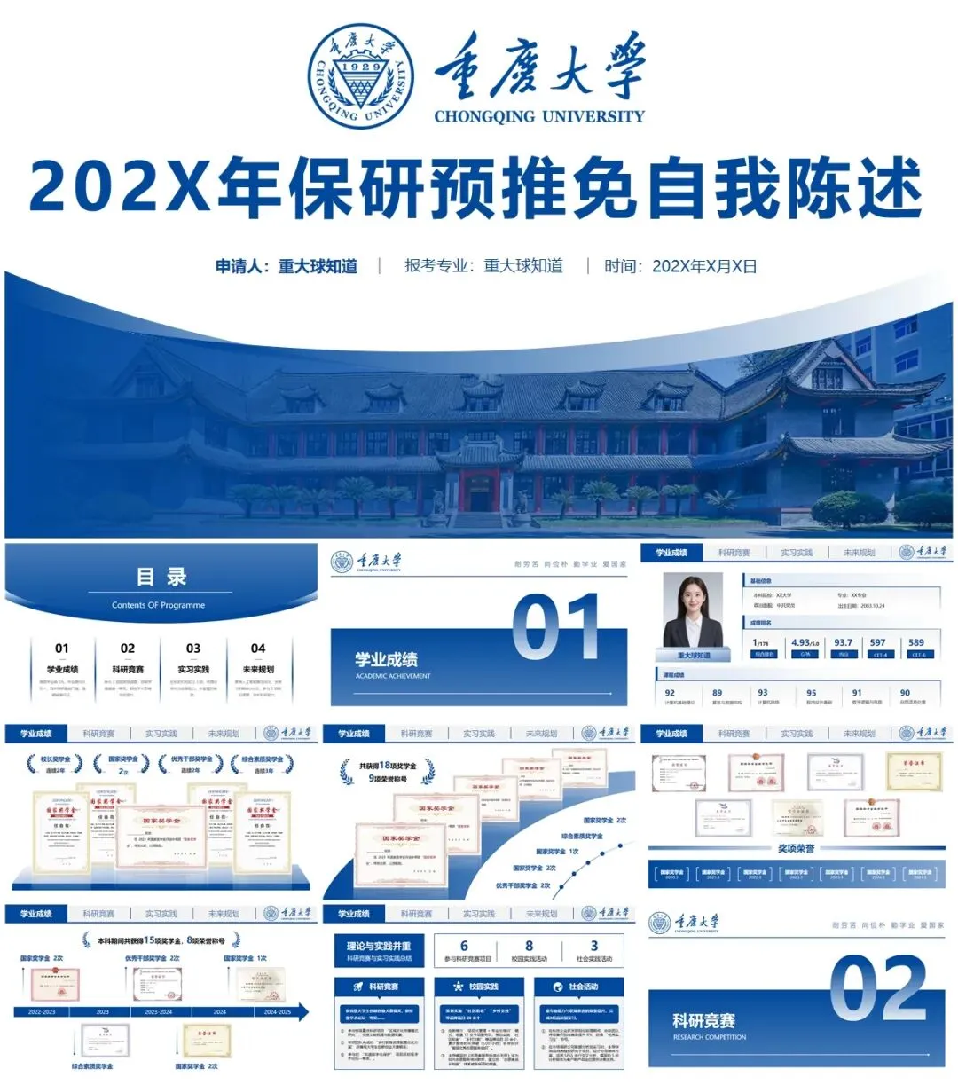保研PPT专属模板来啦~保外校、夏令营、预推免、学术……