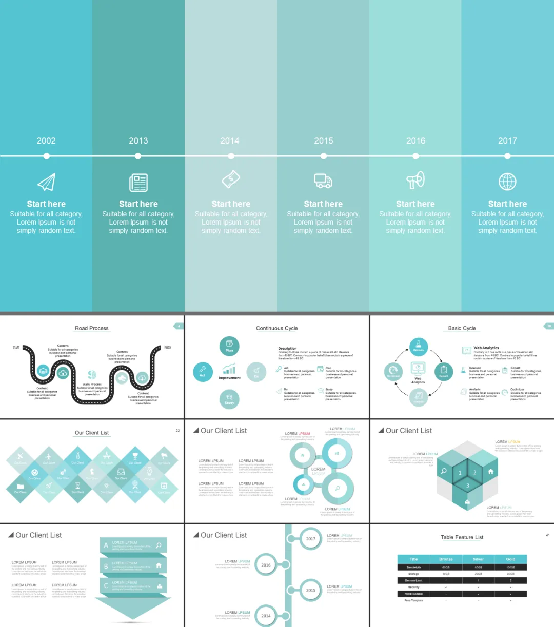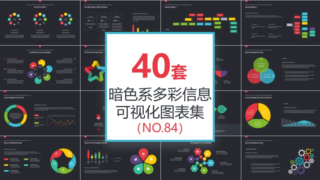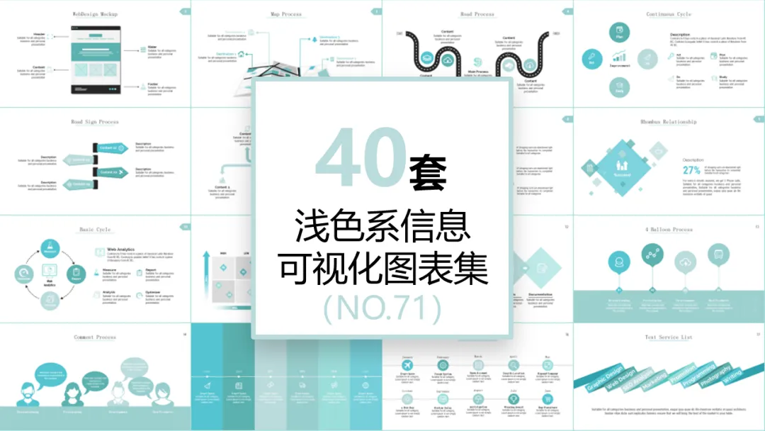 按照类型分,本期资料涵盖了创意图形信息可视化PPT模板、浅色系信息可视化PPT模板、图片解析信息可视化PPT模板、鱼骨流程并列信息可视化PPT模板、微立体并列关系可视化PPT模板、办公各场合适用信息可视化PPT模板、暗色系信息可视化PPT模板、蓝绿配色信息可视化PPT模板、橙绿信息可视化图PPT模板、多彩通用信息可视化PPT模板、箭头信息可视化PPT模板等11大类精美PPT模板,共440套,可以10倍提高你的工作效率,轻松解决你90%的可视化展示需求。