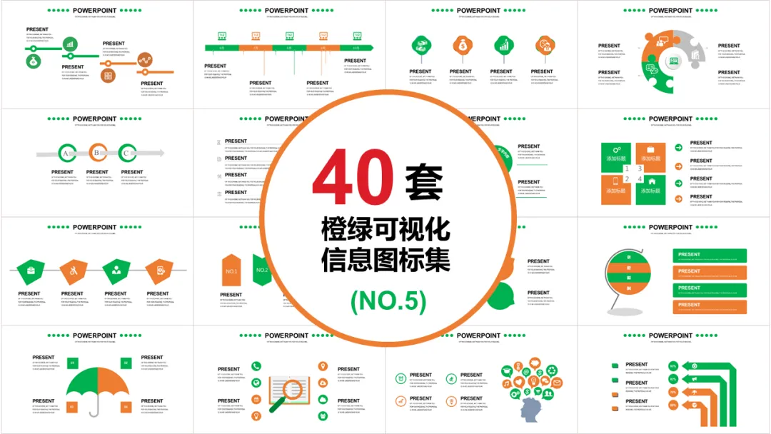 橙绿信息可视化PPT模板