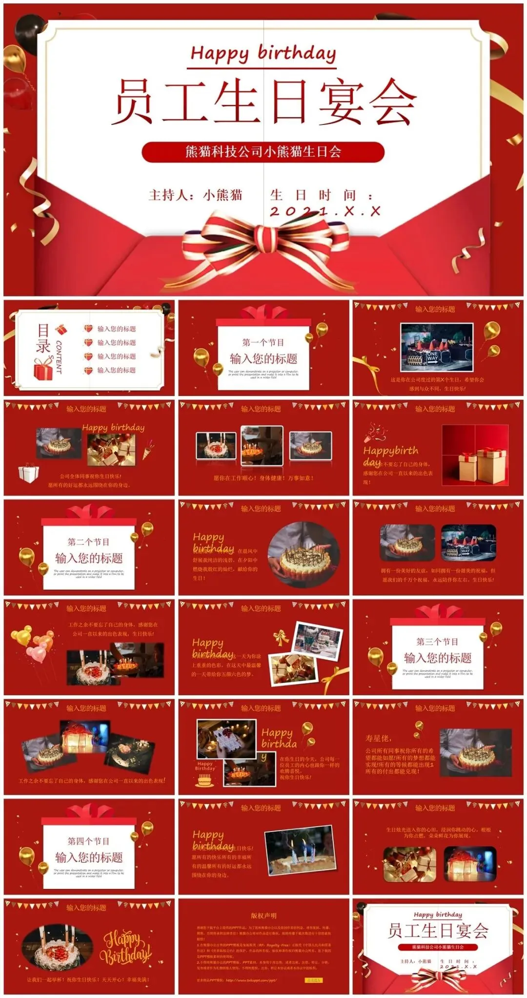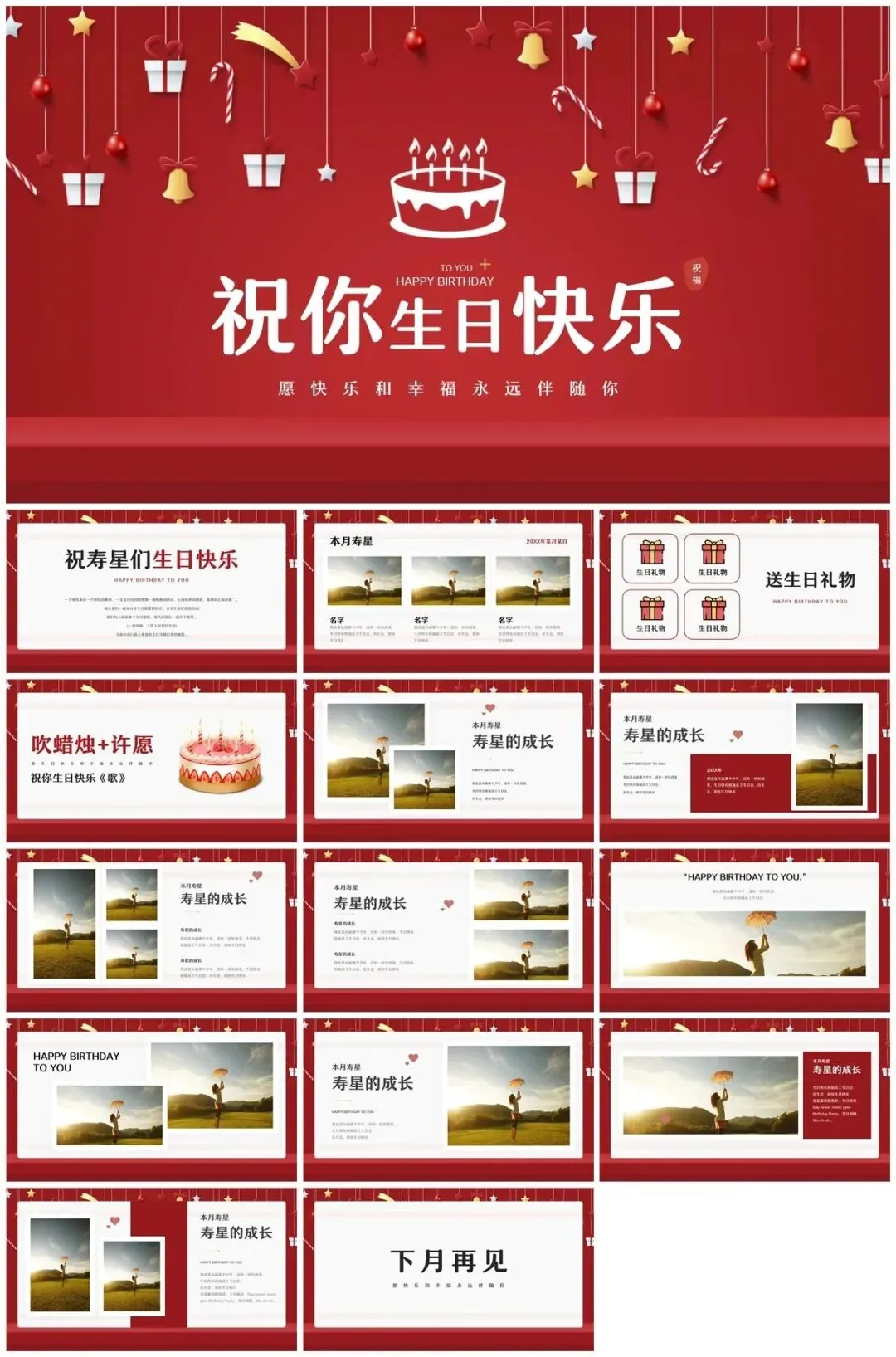 今天分享的是50余套好看的生日主题ppt模板