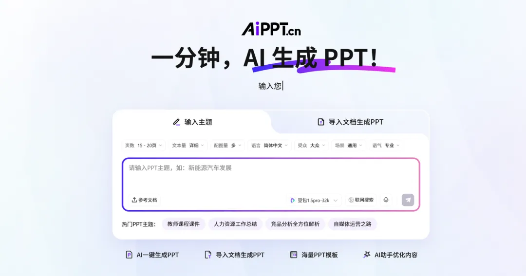 一、AIPPT:AI智能加持,新手高效出稿首选