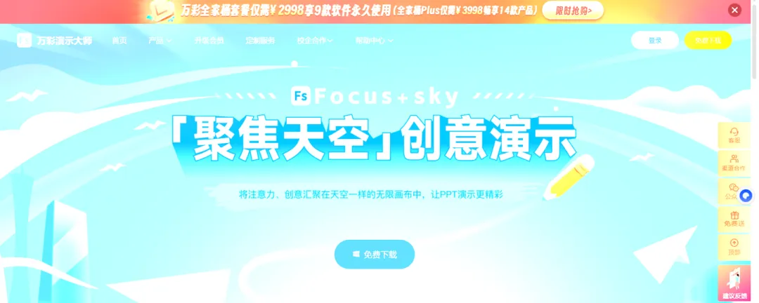精美PPT制作体验地址:https://www.chuangkit.com/solution/20/f21-p1?utm_source=htcpa&utm_content=mngzh0111五、Focusky万彩演示大师:3D交互,让PPT更生动的ppt制作软件