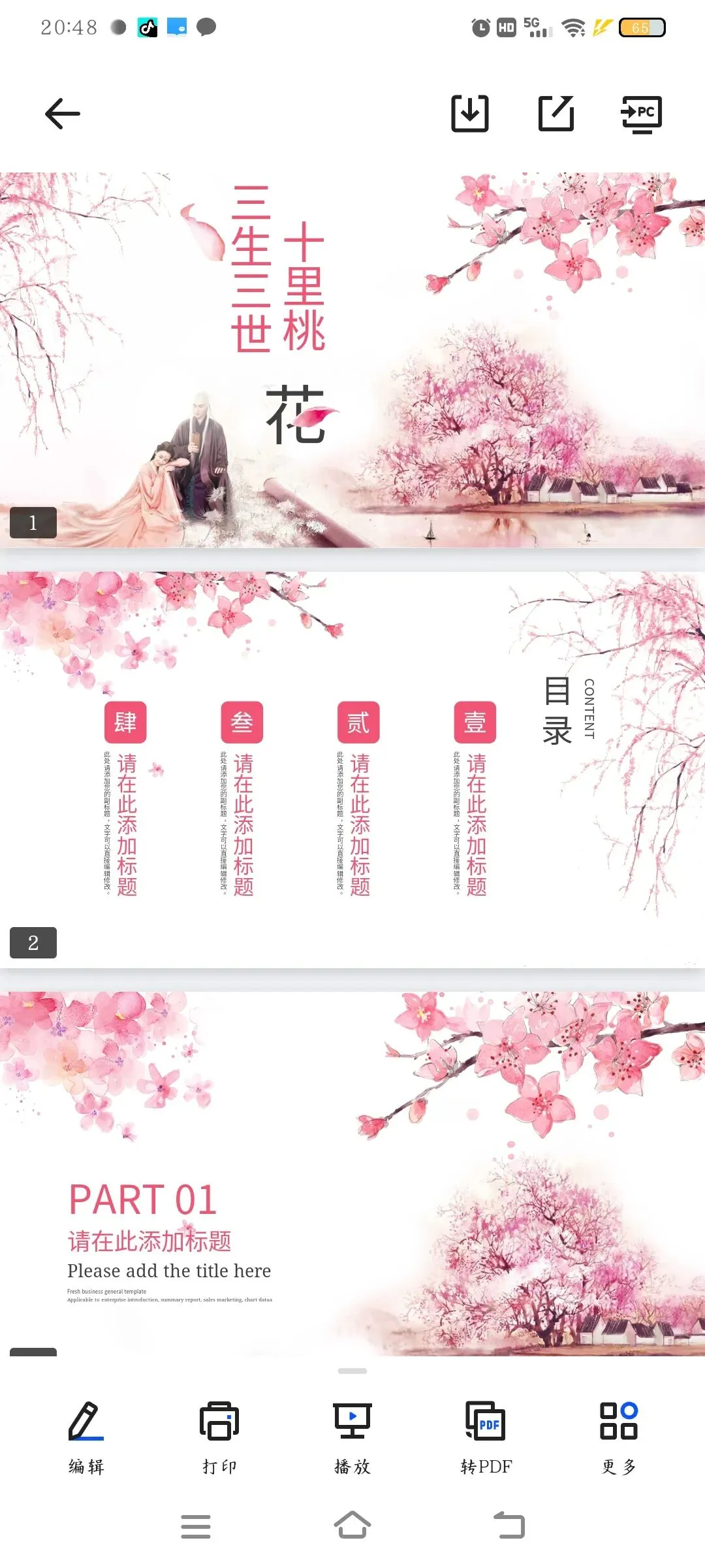 【三生三世十里桃花PPT模板】
