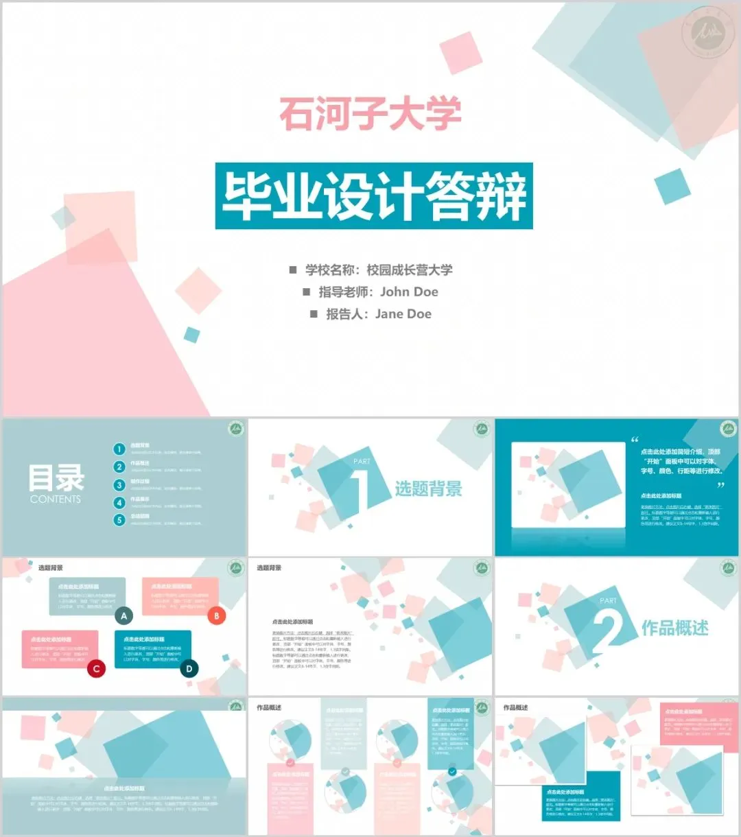包含了高校专属校徽,100+套精选PPT,正式大气中又不失高级活泼,很能展现个性与品位,适用于各种毕业答辩、总结汇报、活动策划、个人简历、宣传推广等场合。快快收好!明德正行,博学多能