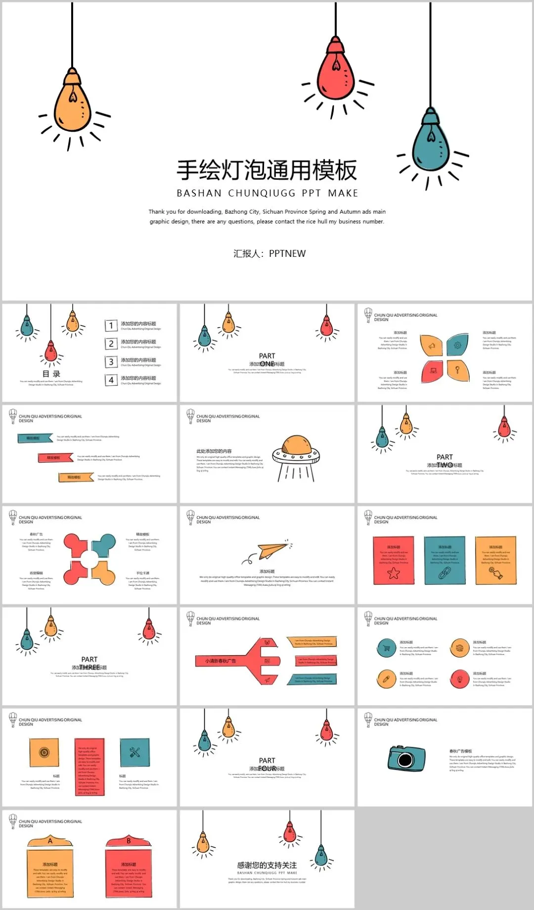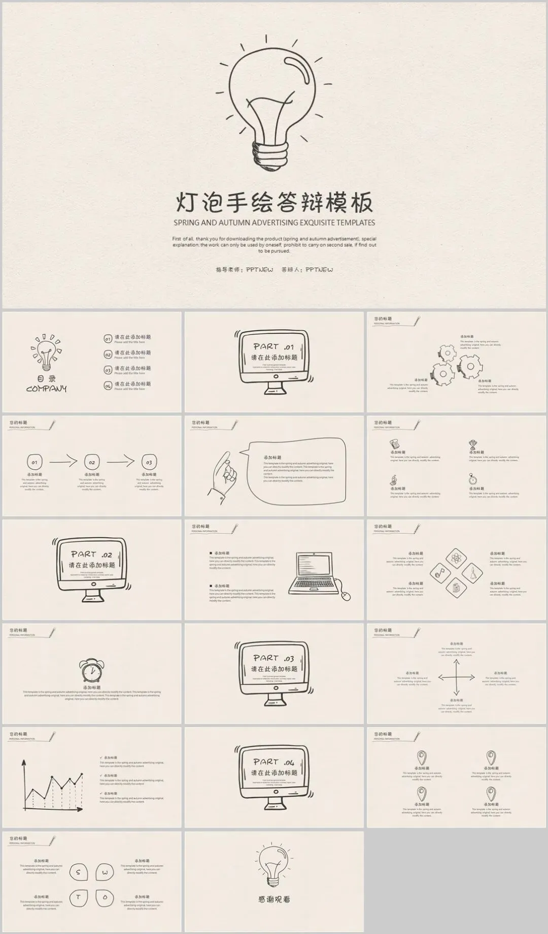 手绘灯泡简约风PPT模板下载