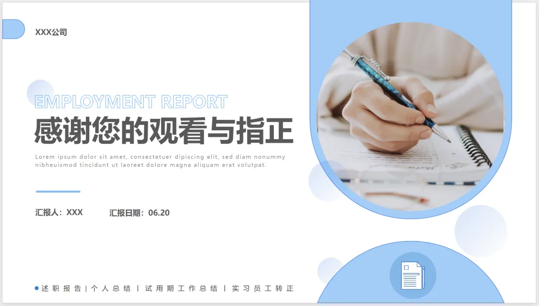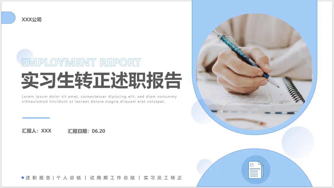 PPT模板下载|蓝色商务风转正述职PPT模板