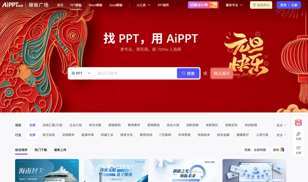 2. 模板资源丰富,提供10万+行业专属模板,风格涵盖简约商务、科技感、正式严谨等多种类型,且持续动态更新,能满足不同行业的工作汇报PPT制作审美需求;