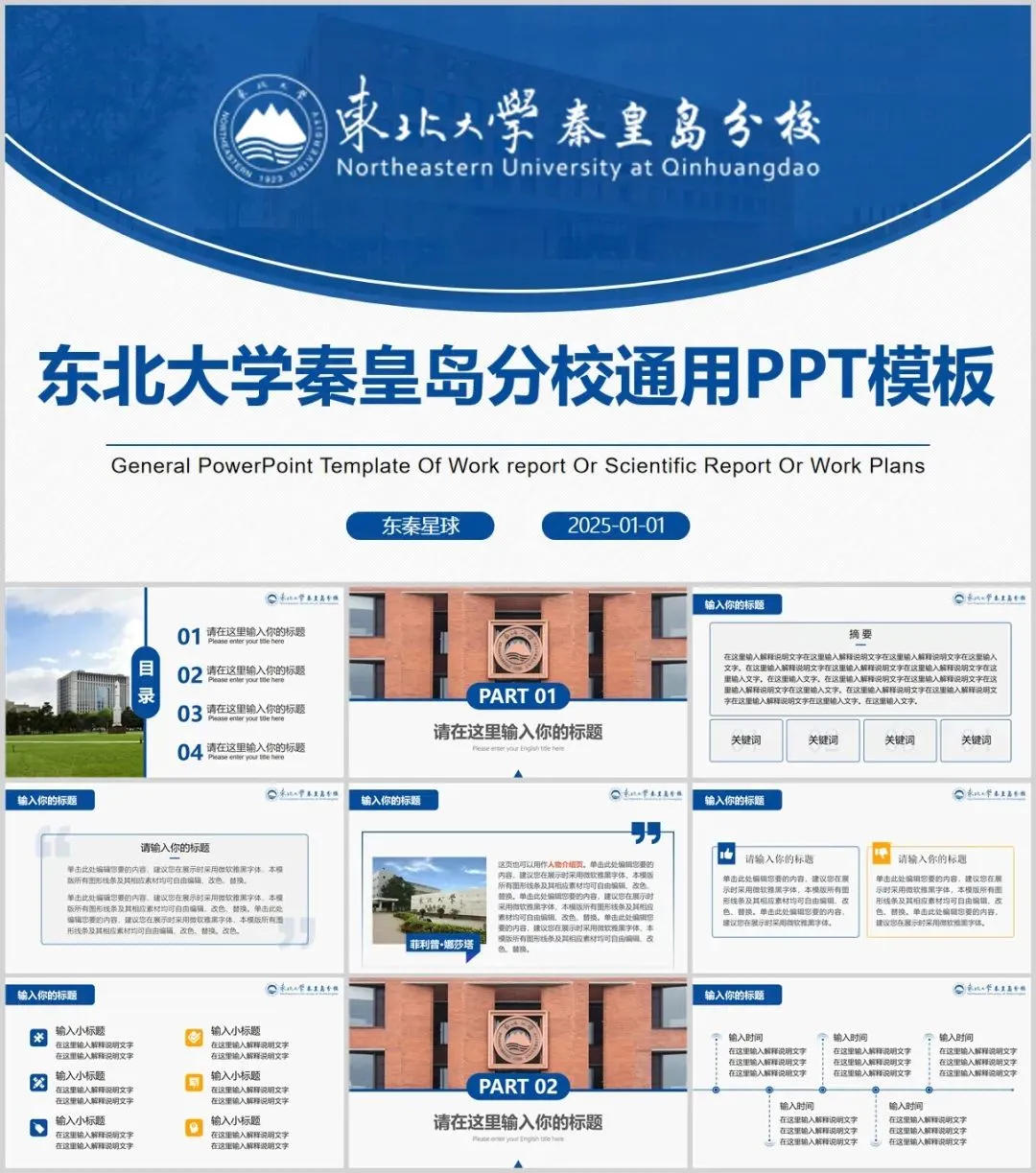 “东北大学(秦皇岛分校)”PPT模板来了~