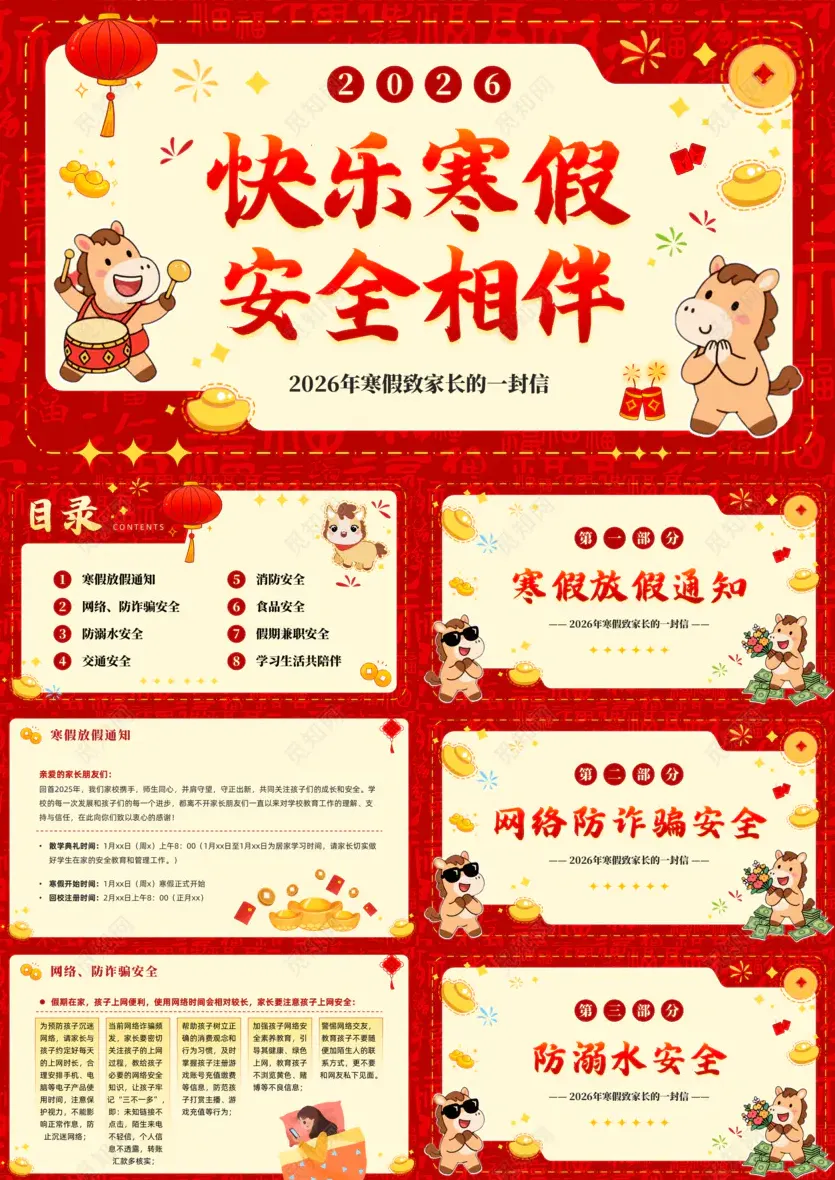 10套寒假生活寒假安全主题PPT模板,2026年最新,免费下载!