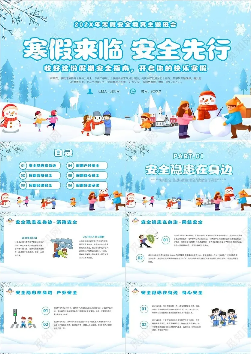 ◆本期分享:寒假生活寒假安全主题PPT模板(10套)