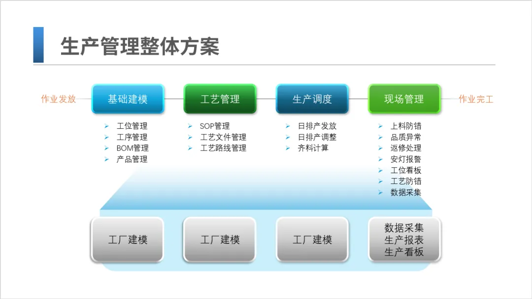 上面这个关于生产管理的PPT,直接将20多年前Theme Gallery在PowerPoint 2003上制作的图表模板搬过来,显得毫无重点,不伦不类,一些文字还在立体形状上溢出了。把过时的立体效果去掉并重新整齐排列,整体的可读性便增强了不少。
