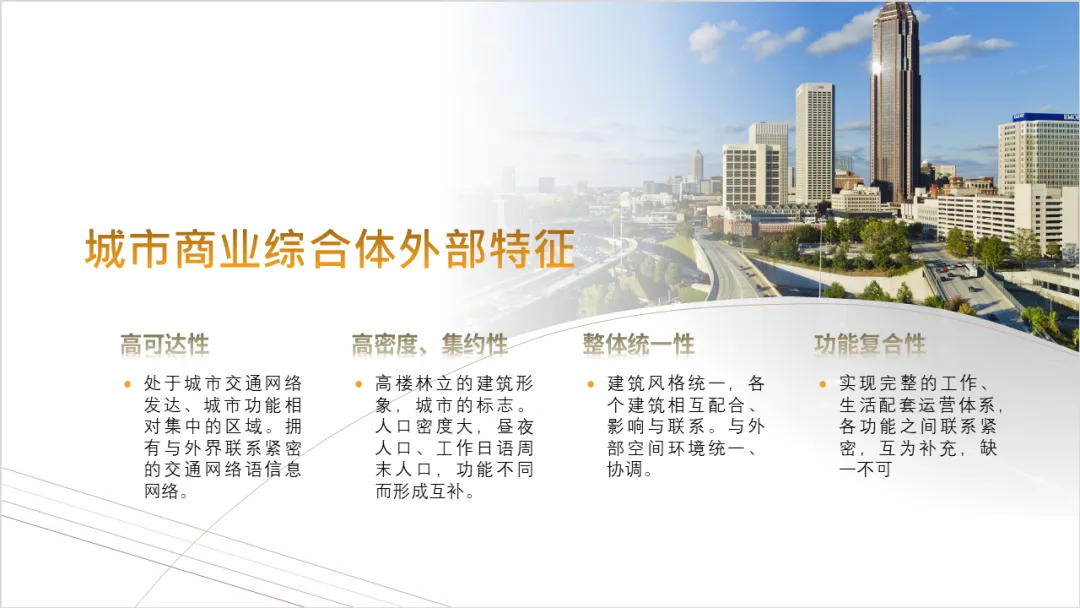 这是一个关于城市规划的PPT案例。原先的PPT像广场舞左一步右一步似的,把图片左一张右一张地排列,观众的眼球不转动几十次都不能看完这张PPT。为此,我们把图片减到只有一张,并把文字按标题引导的方式重新规整地排列,版面马上清晰了不少。