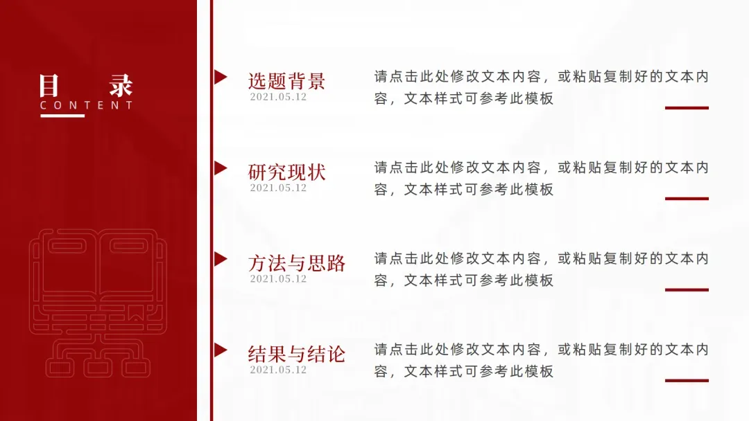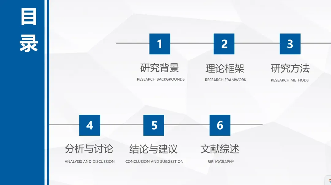 论文答辩PPT一般包含以下 8 个基本部分,如下: