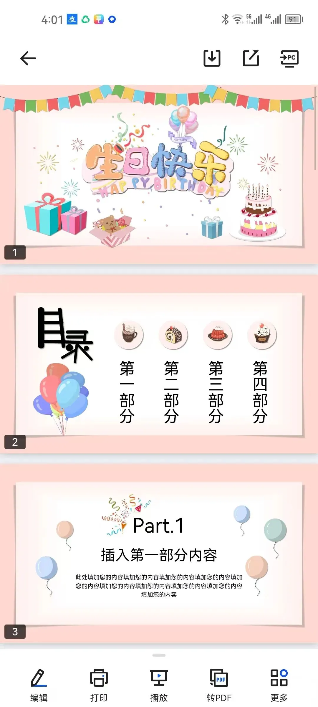 【生日会PPT模板】