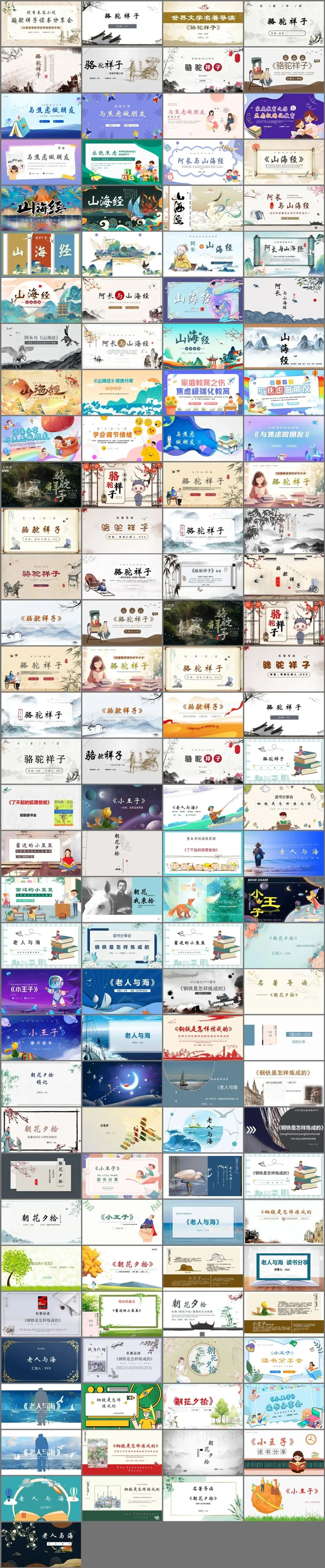 包括了:《骆驼祥子》读书分享会PPT、世界文学名著导读《骆驼祥子》PPT、与焦虑做朋友PPT、容貌焦虑PPT、阿长与山海经PPT、山海经PPT、《山海经》阅读分享PPT、家庭教育之伤焦虑极端化教育PPT、学会调节情绪PPT、《钢铁是怎样练成的》读书分享会PPT、《小王子》PPT、《窗边的小豆豆》读书分享PPT、《了不起的狐狸爸爸》阅读推荐PPT、《朝花夕拾》PPT、《老人与海》PPT等。