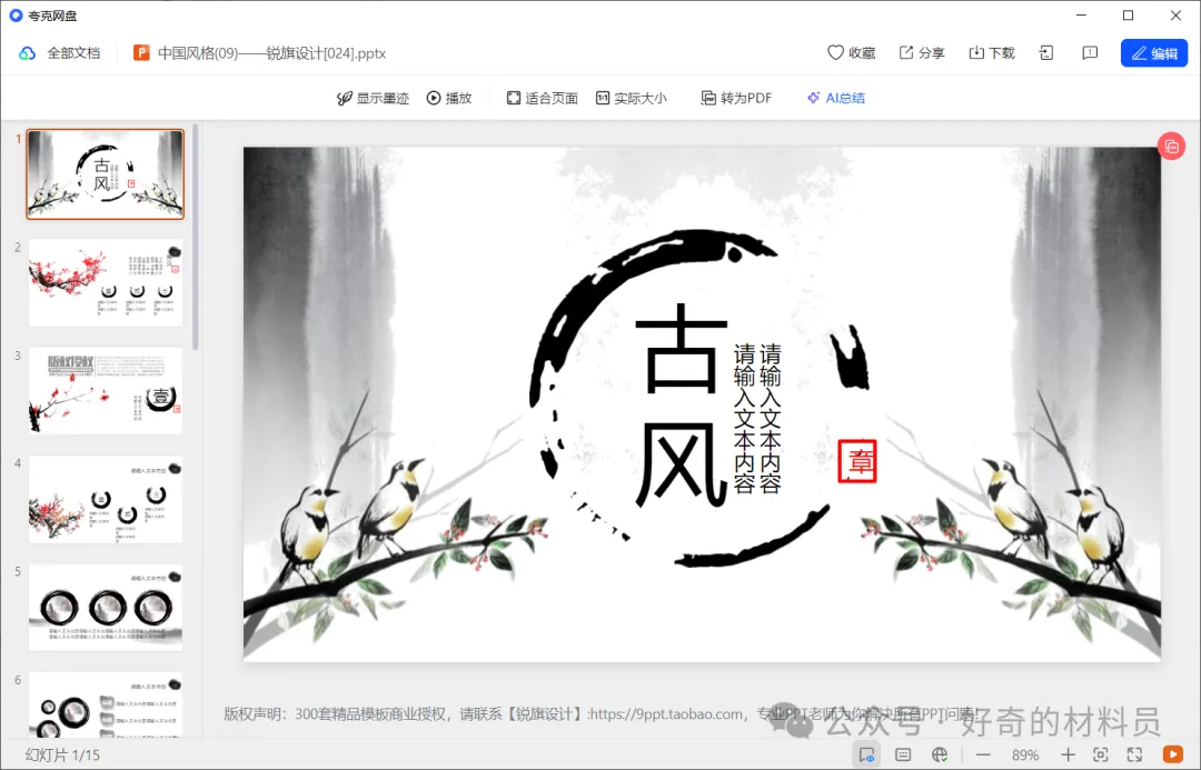 本公众号平时主要分享PPT、AI、软件等方面的资源。