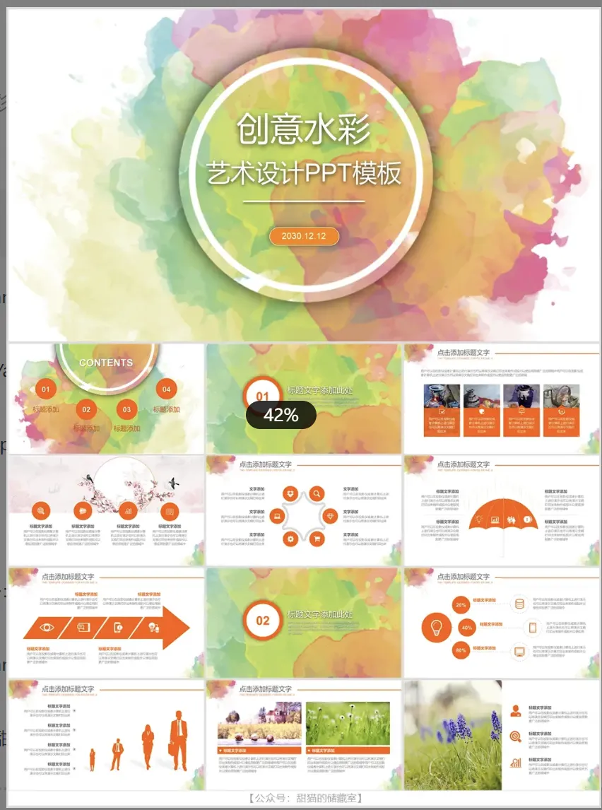 >25套创意彩色水彩墨迹PPT模板