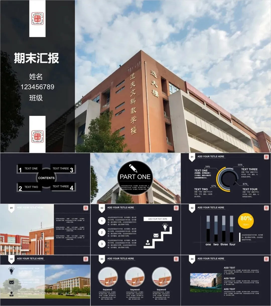 以上是我们为大家准备的江西科技师范大学专属PPT模板,文中的所有板式都是可编辑的,大家可以上传替换自己喜欢的校园美景,做出具有自己风格的专属PPT哦!其他同学也可以给我留言