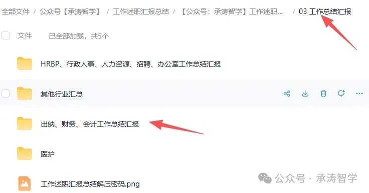 在编号03的工作总结汇报之出纳、财务、会计文件夹里,按照文件名对应查找即可。