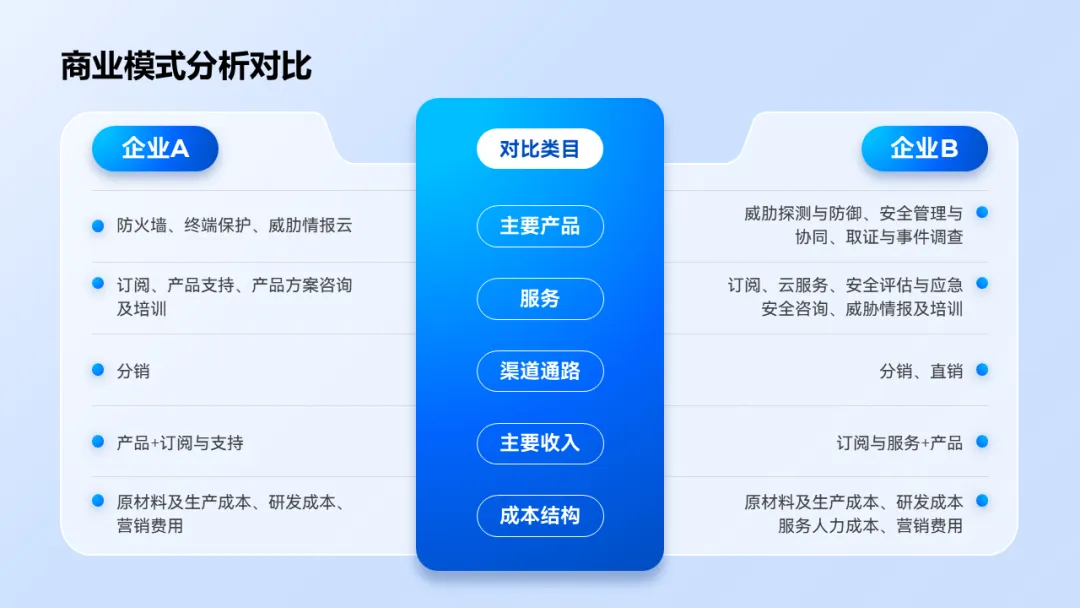 核心亮点: 深蓝配色,对比清晰,适合各类产品、工艺、流程、市场对比。