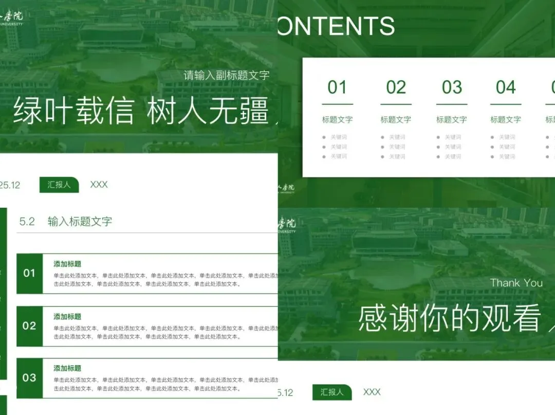《青韵学府·线影鎏金——用绿色线稿与烫金温度,勾勒校园的生长与荣光》