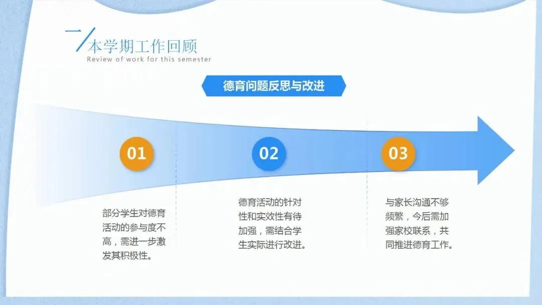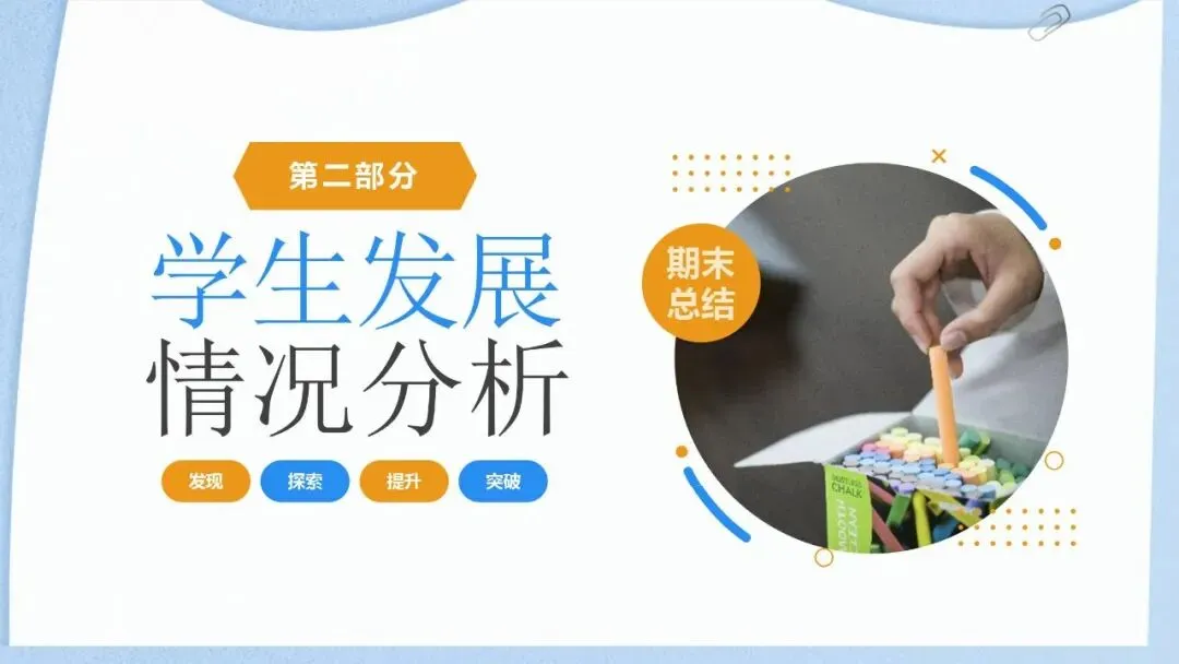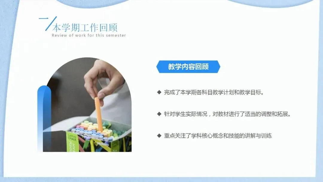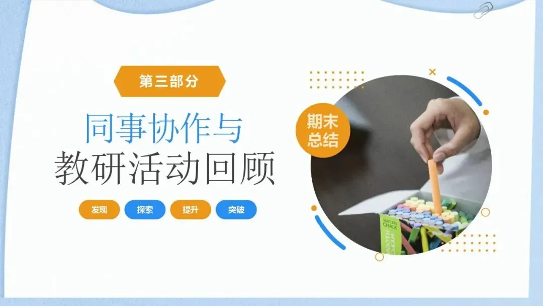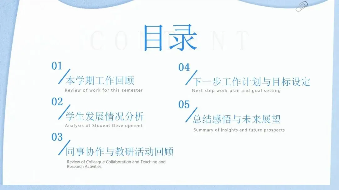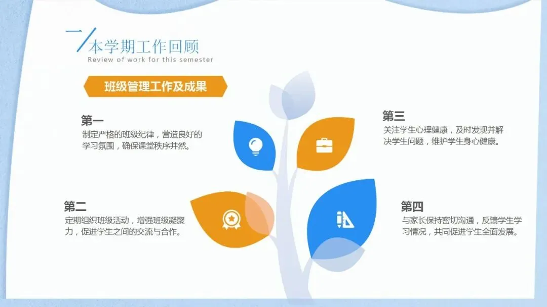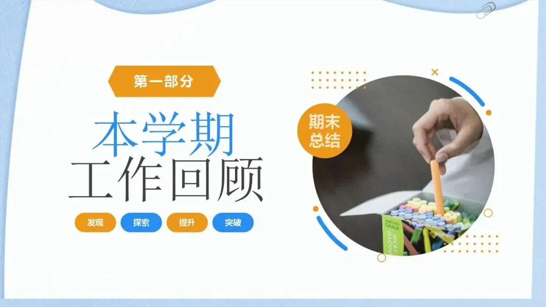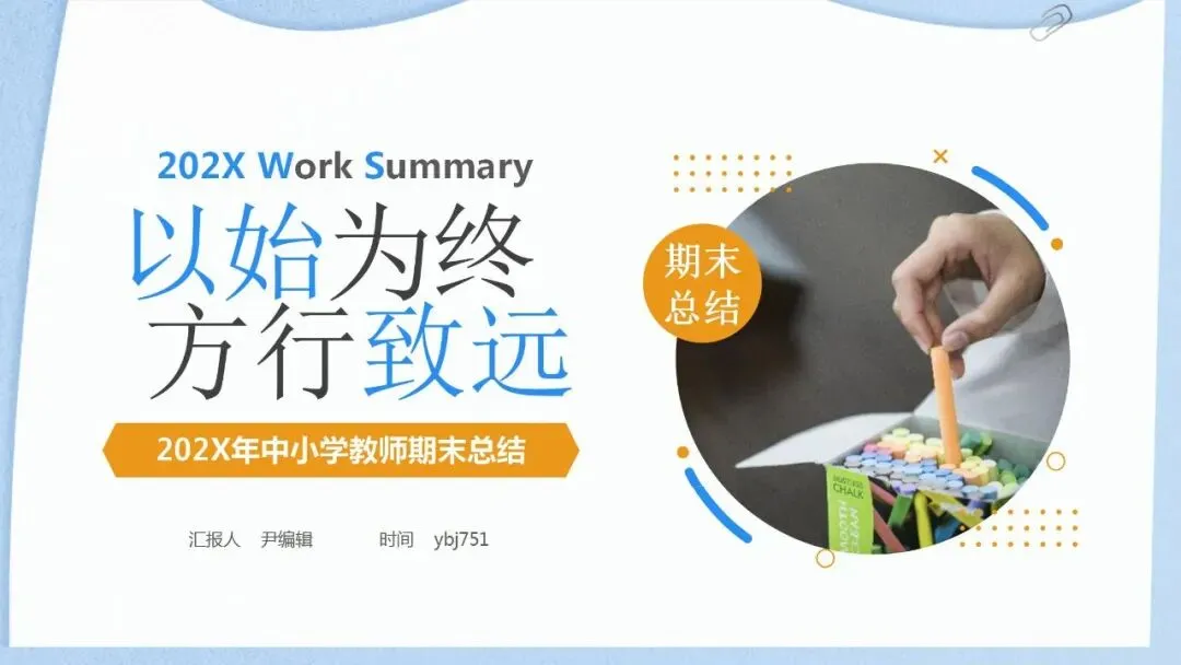 这是一套蓝色“以始为终方行致远”中小学教师期末总结PPT模板,共29页;