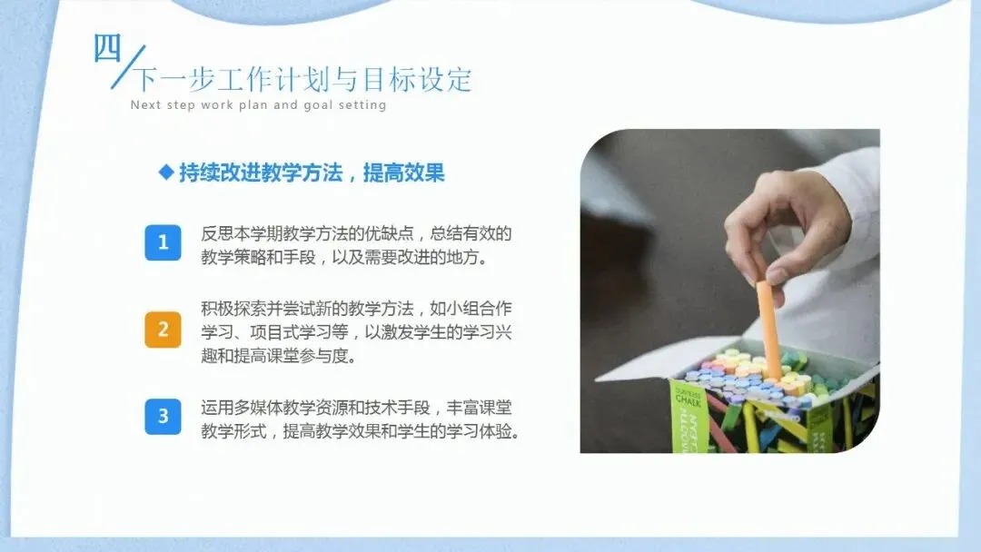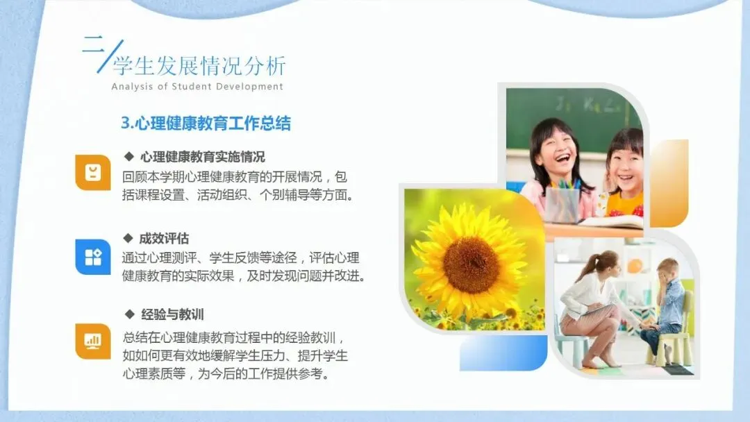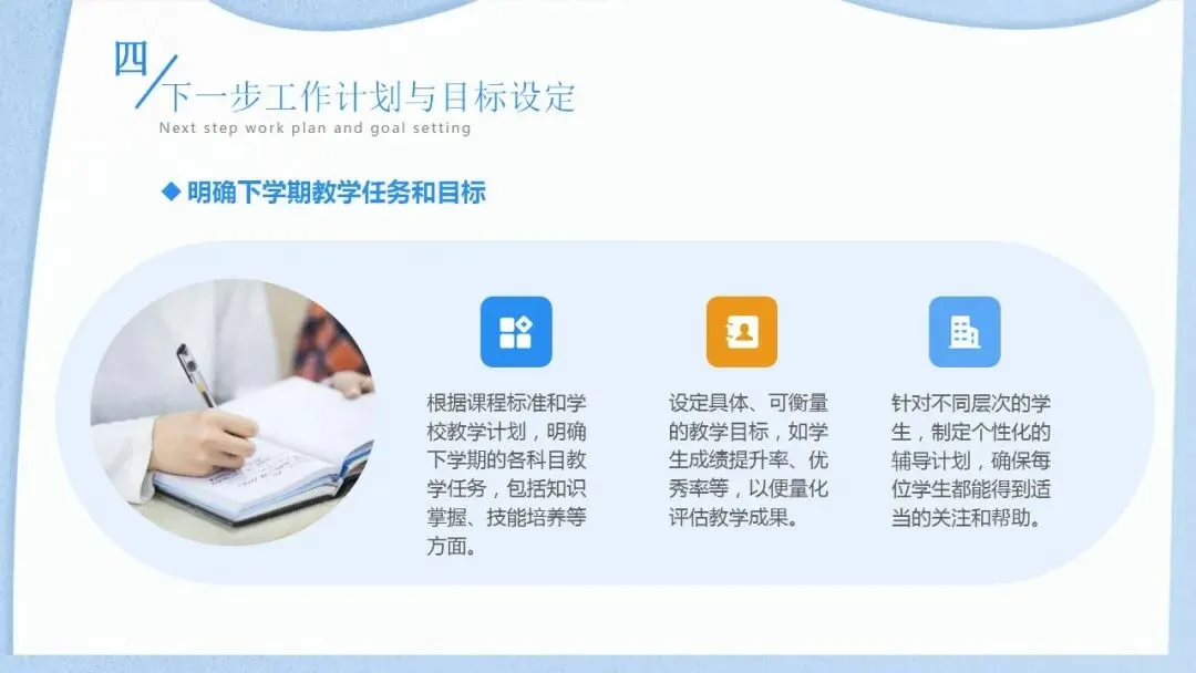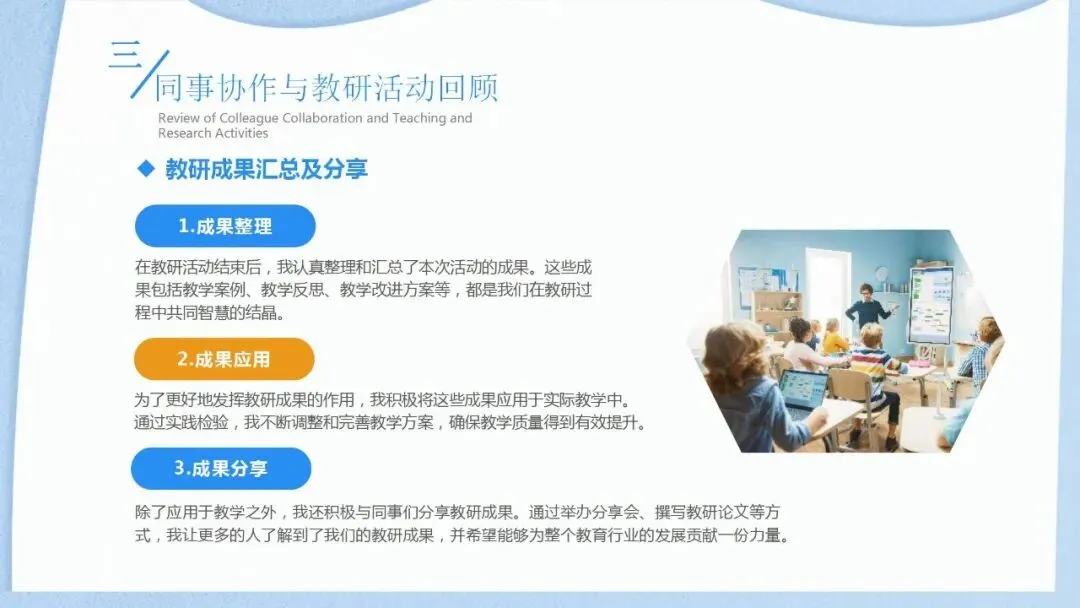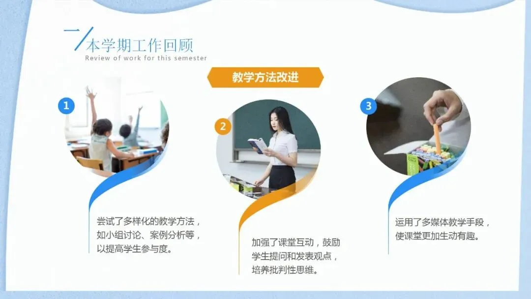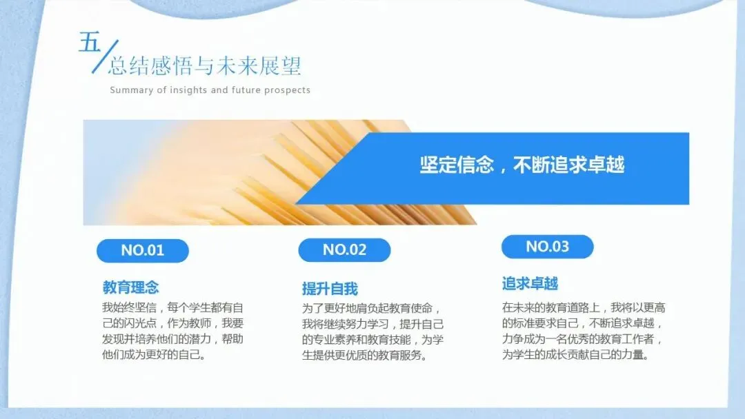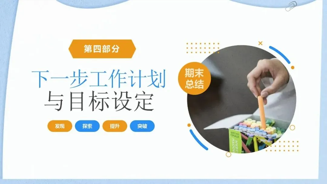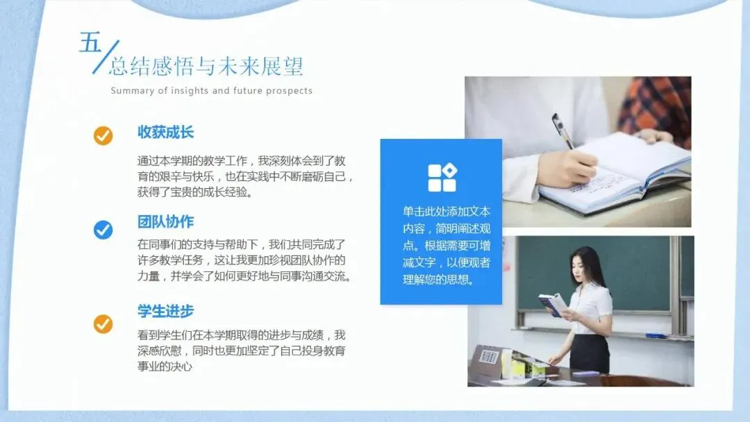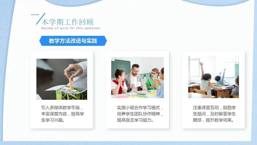 这是一套蓝色“以始为终方行致远”中小学教师期末总结PPT模板,共29页;