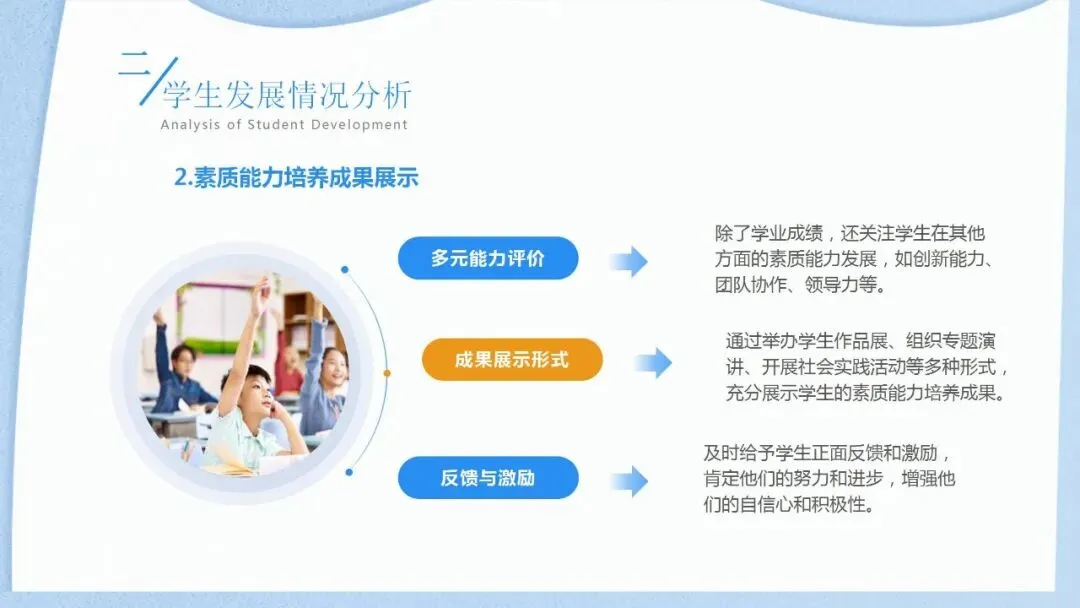PowerPoint模板内容页,由27张蓝色动态幻灯片图表,搭配PPT文字排版。另外使用了教师插图、小朋友插图等装饰。