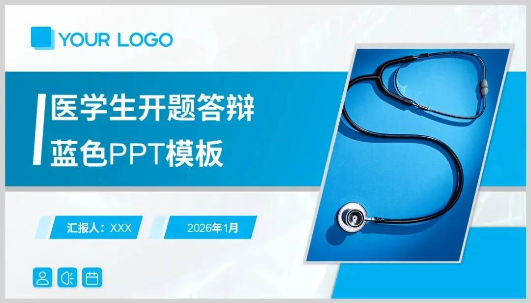 这款蓝色 PPT 模板以清晰逻辑架构覆盖开题背景、文献综述、研究方法等六大核心模块,从临床需求论证到创新可行性分析,层层递进适配医学研究汇报场景。