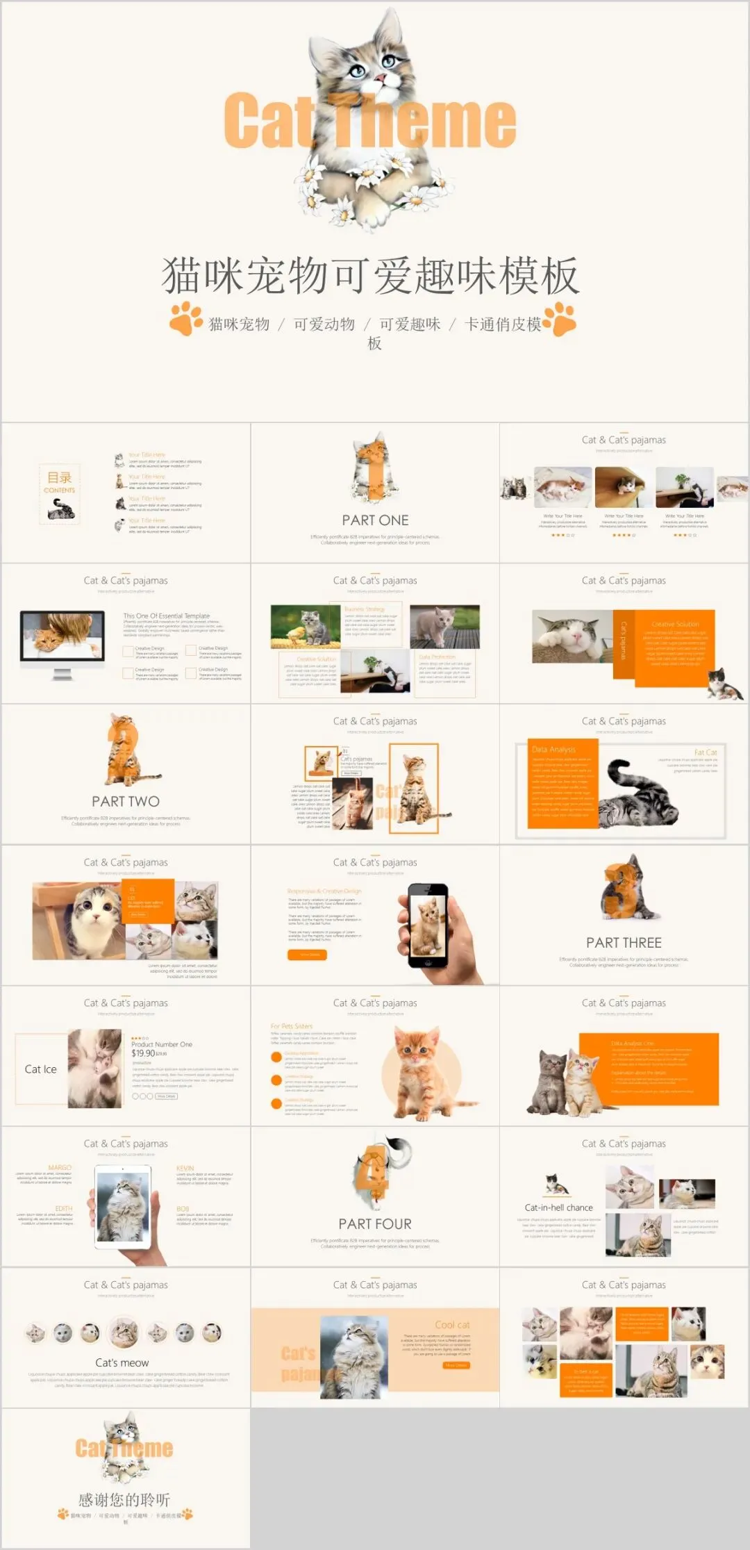 文件名称:猫咪主题PPT模板