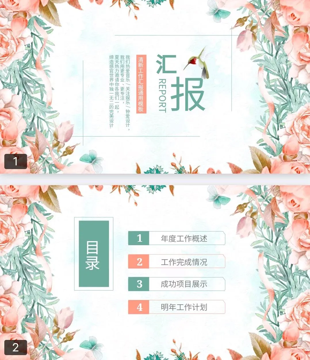 本文分享的是【花卉淡雅风格PPT模板】